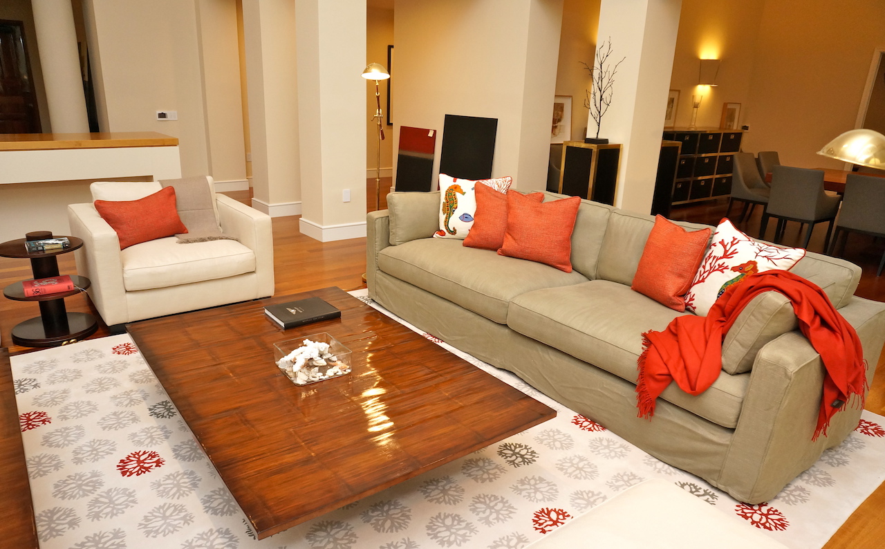 Da sich die Wohnung am Meer befindet, sollte die Einrichtung sich an die Atmosphäre vor Ort anpassen. Die Umsetzung gelang durch das Aufnehmen von Maritimen Farben sowie Dekorationsdetails wie Korallen und Muscheln. Die warmen, sandfarbenen Bezugsstoffe bringen Frische und vermittlen Leichtigkeit und Ruhe.