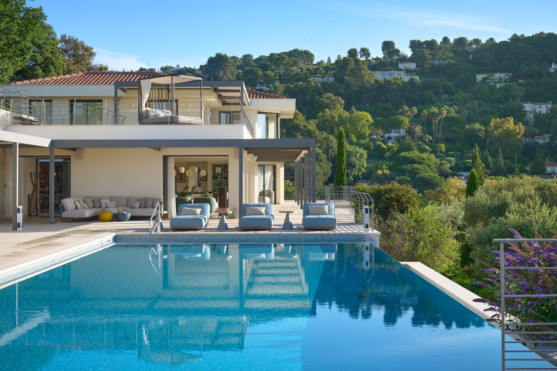 Das moderne Ferienhaus in Südfrankreich, wurde als Oase der Erholung und des Genusses entworfen. Die Gestaltung verbindet zeitlose Eleganz mit persönlichen Designelementen.
