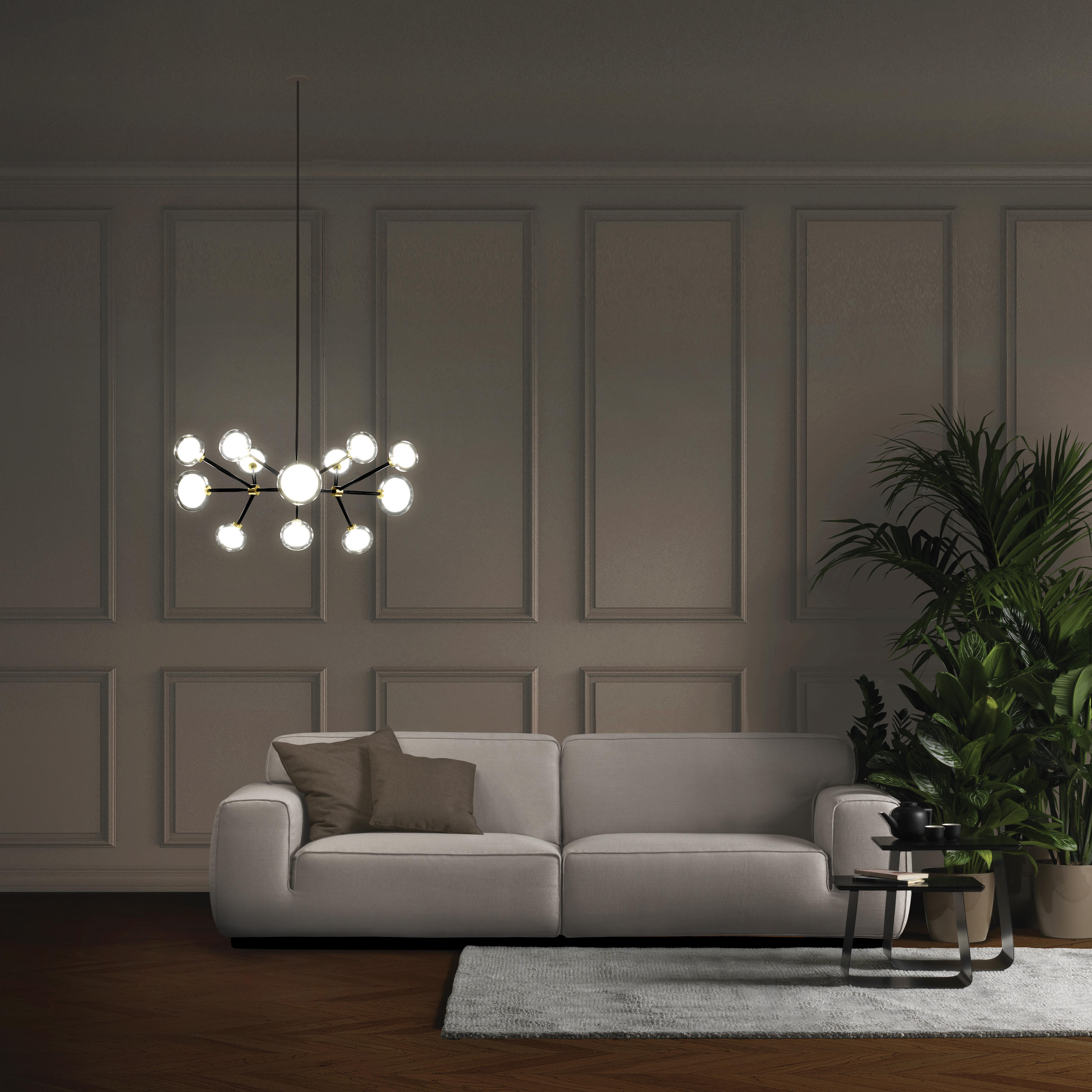 Für jede Situation stehen verschiedene Varianten der Serie Nablia zur Verfügung: Kronleuchter (in drei verschiedenen Modellen) oder Tischlampe, Nachttischleuchte (kleiner), Boden- oder Wandlampen (in drei verschiedenen Ausführungen für die individuelle oder zusammengesetzte individuelle Installation erhältlich) sowie als Pendelleuchte mit einzelnen Glastropfen.
