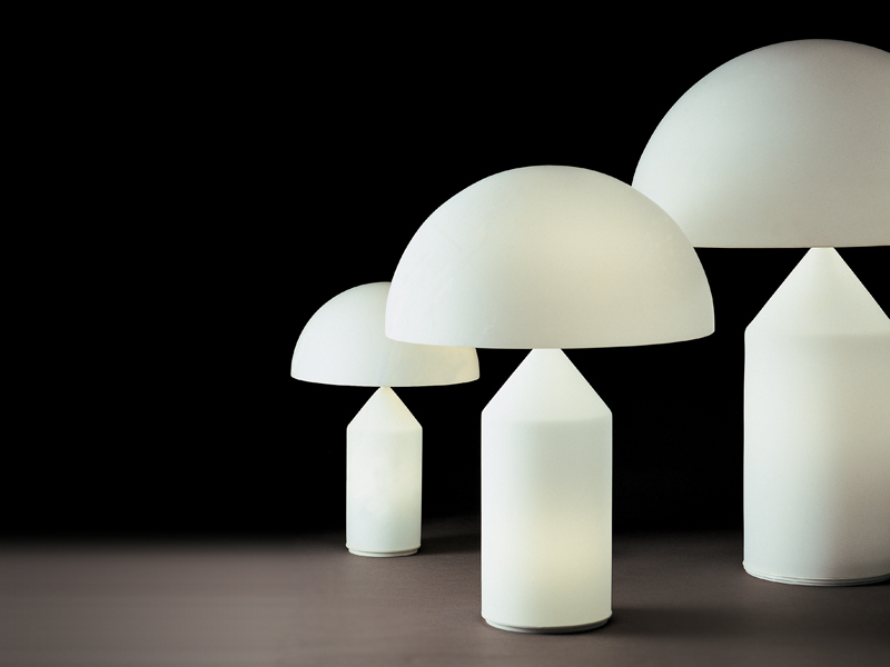 Entworfen im Jahr 1977 von Vico Magistretti, wurde die Leuchte Atollo im Laufe der Jahre zum Archetyp der Tischleuchte.
