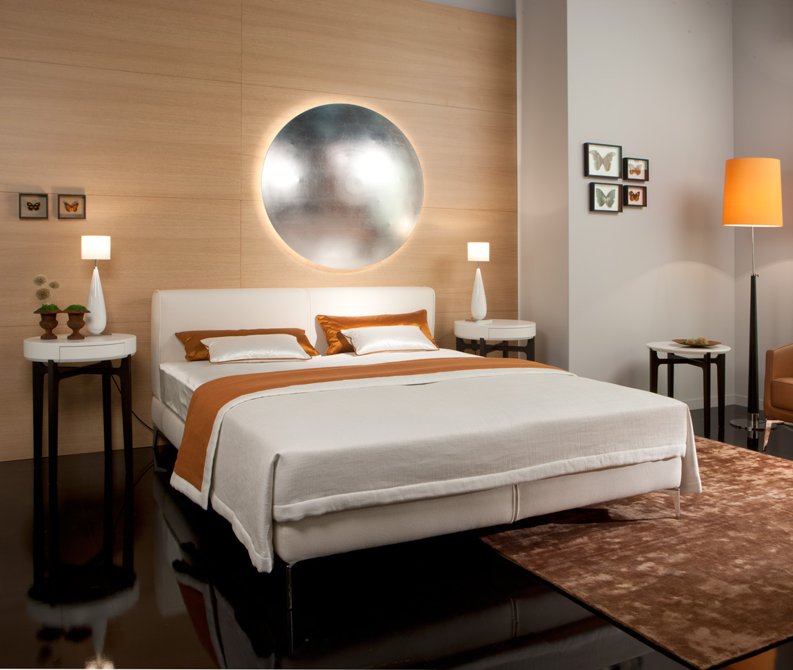 Sein bequemes Kopfteil ist wahlweise als Hohe (102 cm hoch) oder Niedrige Version (86 cm hoch) erhältlich und rundum bezogen, so dass sich Time auch mitten im Raum platzieren lässt.
