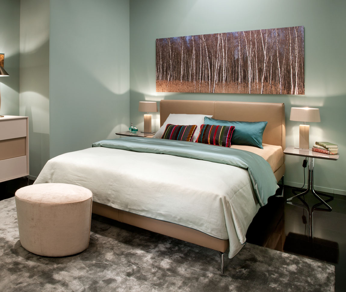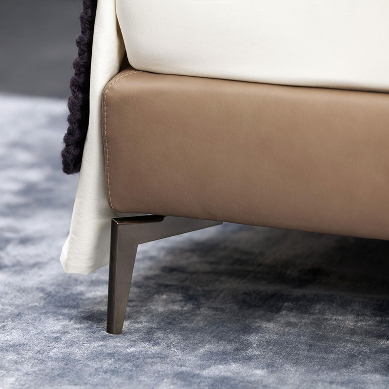 Das Bett ist mit verschiedenen Stoff- sowie Lederbezügen erhältlich.