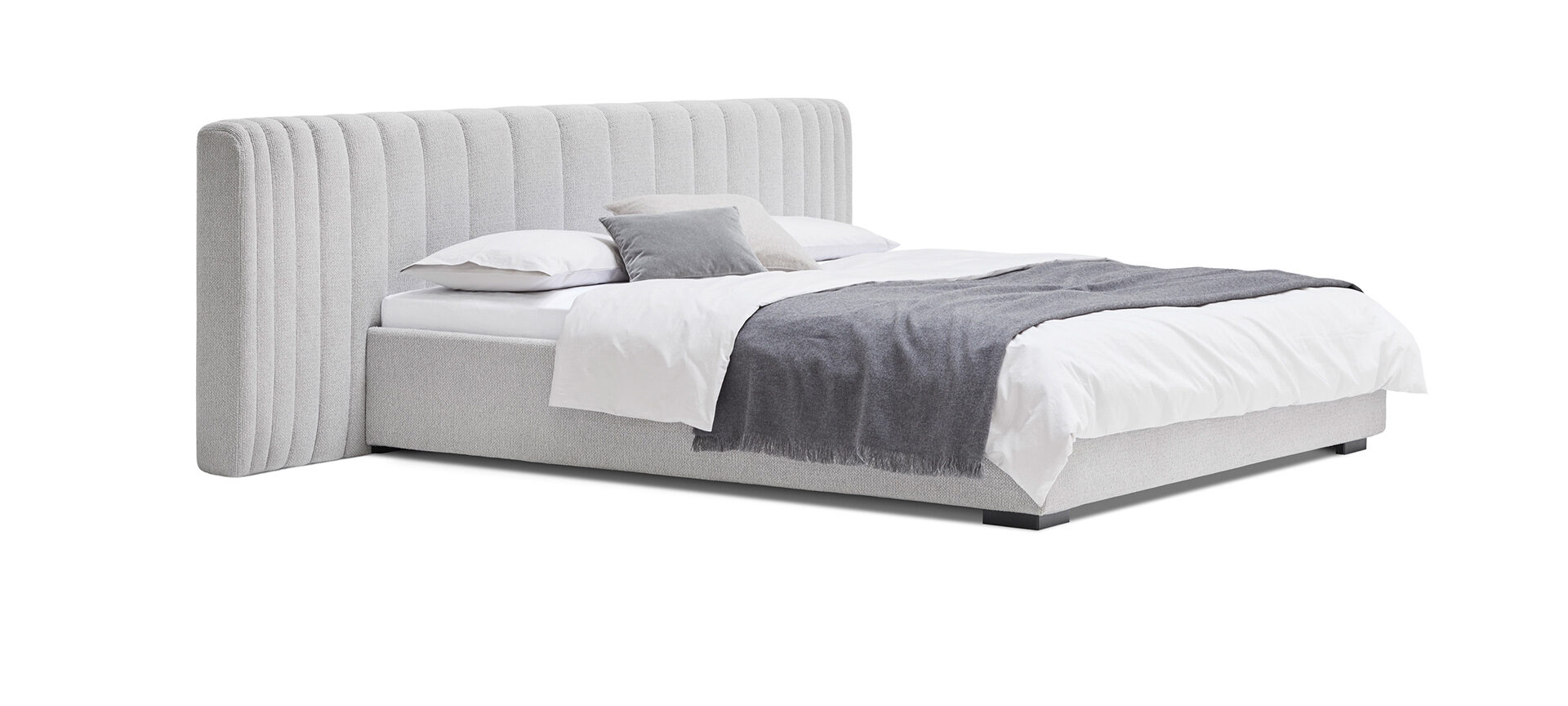 Das Bett ist in verschiedenen Größen sowie Bezugsqualitäten erhältlich.