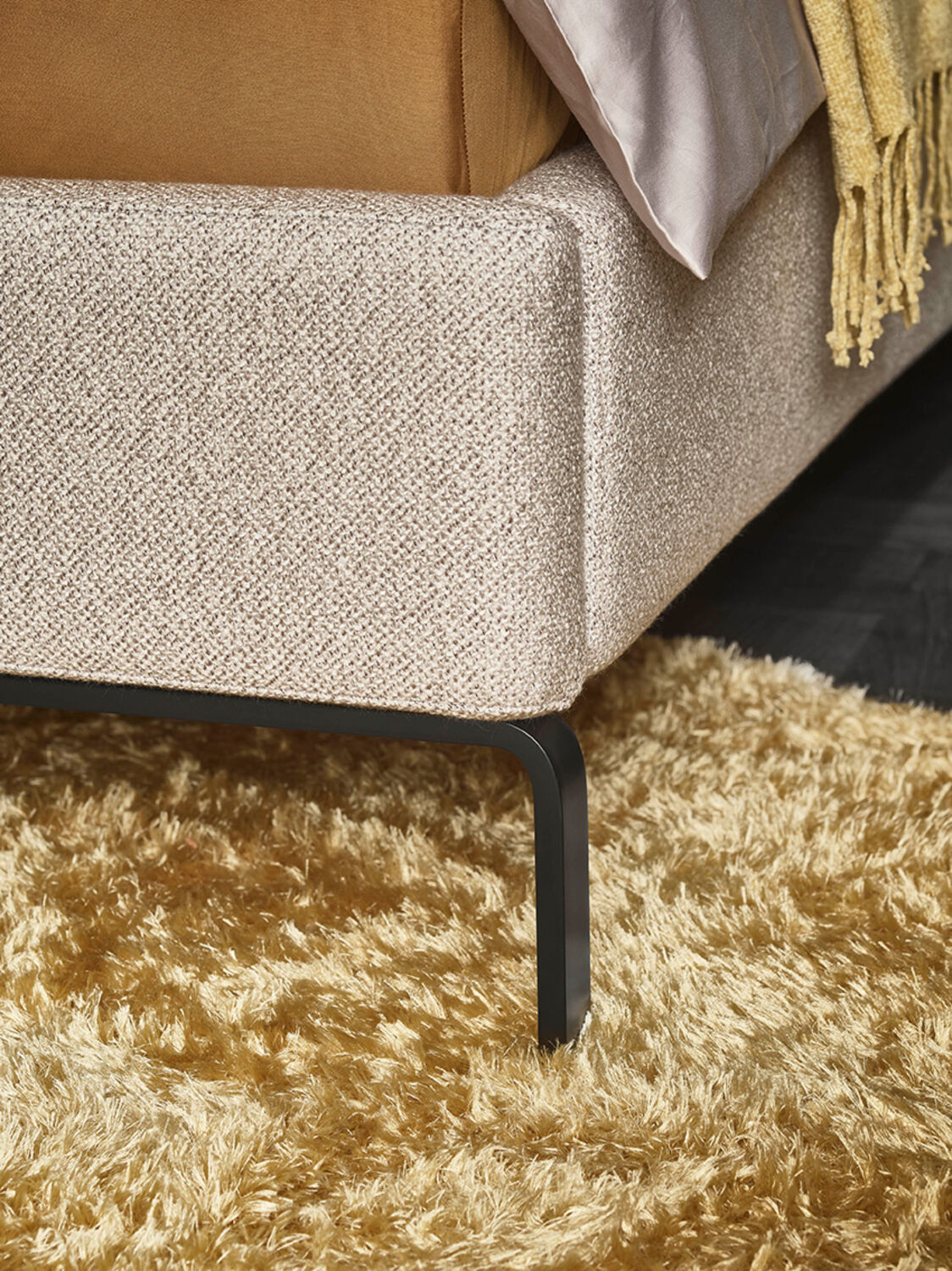 Wahlweise ist das Kopfteil in der Standardhöhe 96,5 cm sowie der Maxihöhe 106,5 cm erhältlich. Bei der Fußausführung stehen Ihnen ein moderner Metfallfuß, eine optisch spannende Metallkufe sowie ein klassischer Fußbügel zur Auswahl. Diese sind farblich in verchromt, rauchbraun und schwarz gepulvert wählbar. Bei dem Stoff- oder Lederbezug gibt es eine große Auswahl an Qualitäten, die ideal Ihren Schlafbereich abrunden.