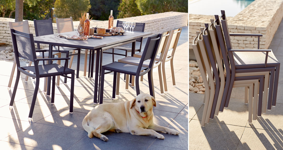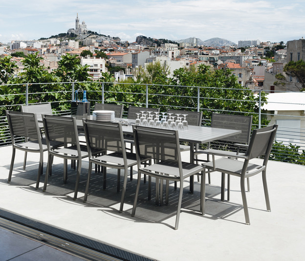 Die breite Auswahl an Sitzgelegenheiten und Metalltischen der Kollektion erfüllt auch sämtliche Wünsche: Wohnraum im Garten oder Essecke, mit hohen oder niedrigen Möbeln oder Möbeln in Standardhöhe.