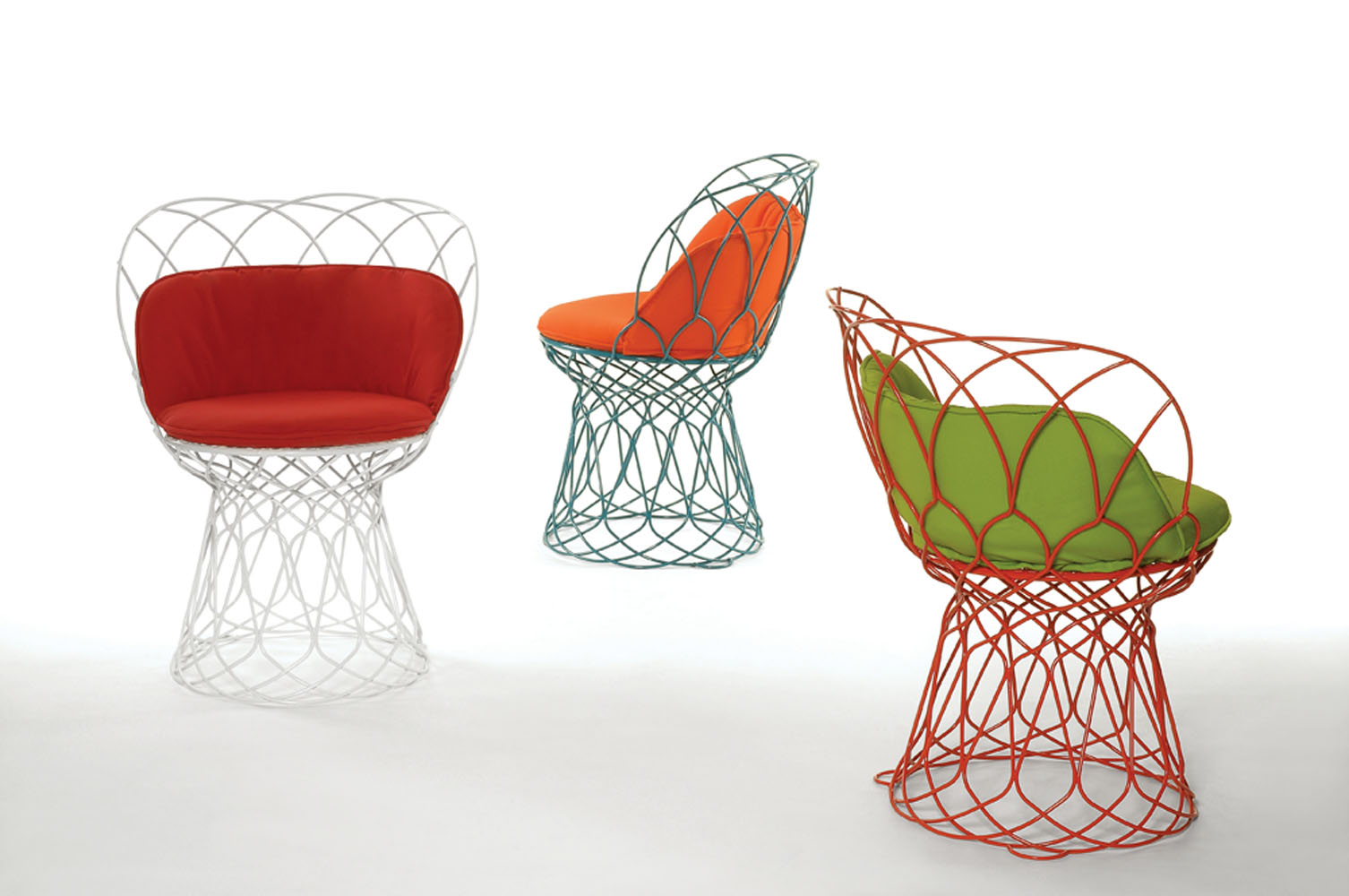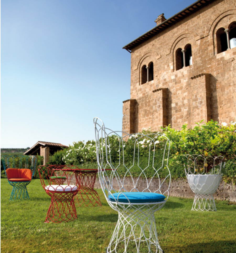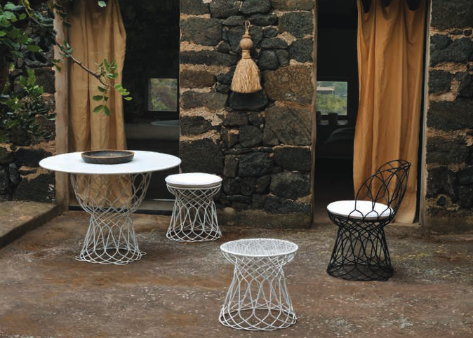 Die Gartenmöbel Serie Re-Trouvé ist aus verzinktem Stahl und besteht aus Tisch, Stuhl und Hocker. Re-Trouvé entspringt traditionellen Formen, welche von Patricia Urquiola wiederentdeckt und auf ironische und originelle Weise neu interpretiert werden.