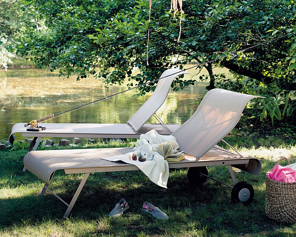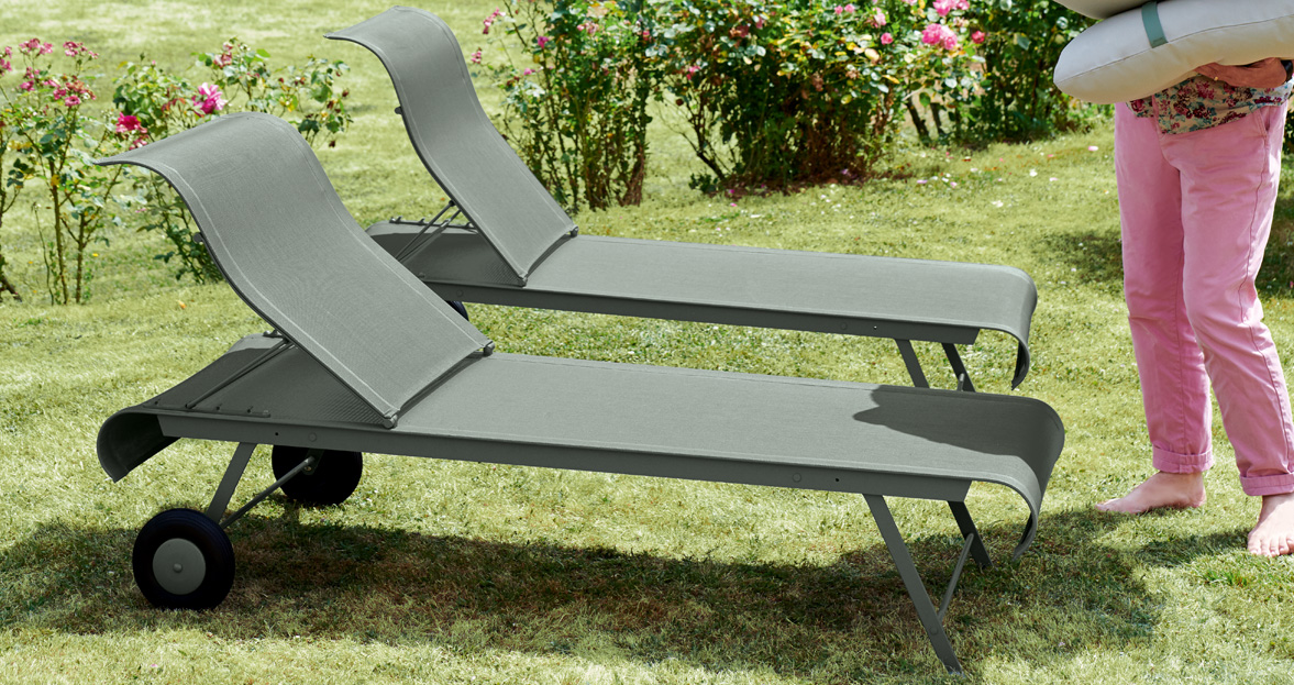 Die Sonnenliege ist eine Liege aus der Stuhlserie Dune, die eine in 4 Positionen einstellbaren Rückenlehne hat. Die Liegefläche hat die Maße 190 cm lang x 65 cm breit. Durch ultrahochwirksame Schutzbehandlung ist sie für den Gebrauch im Freien geeignet. Die Sitzfläche und Rückenlehne ist aus reißfestem Technischen Outdoorgewebe und doppelt gewebt. Praktischerweise ist die Liege rollbar und mit zwei Rollen ausgestattet, die einen Durchmesser von ø 20 cm haben.