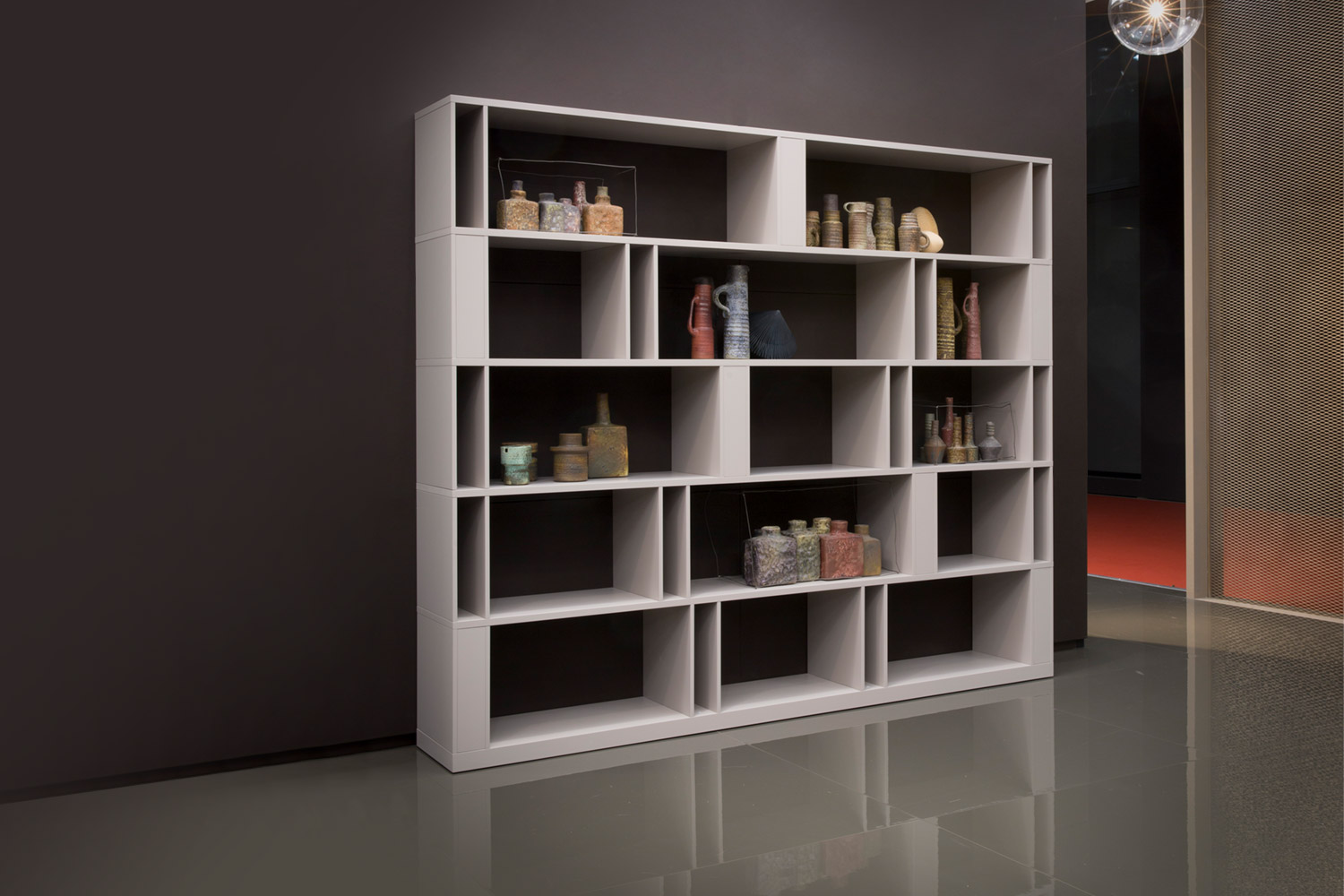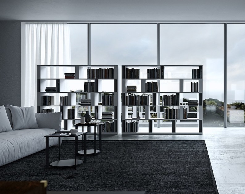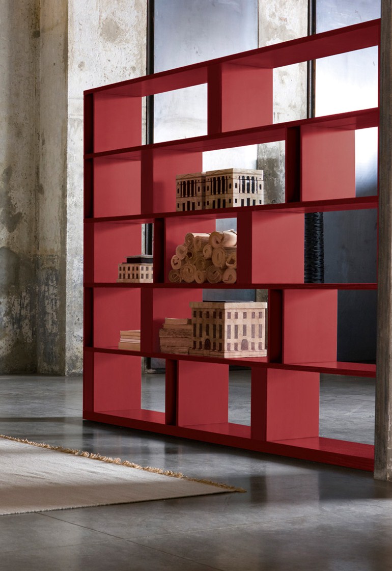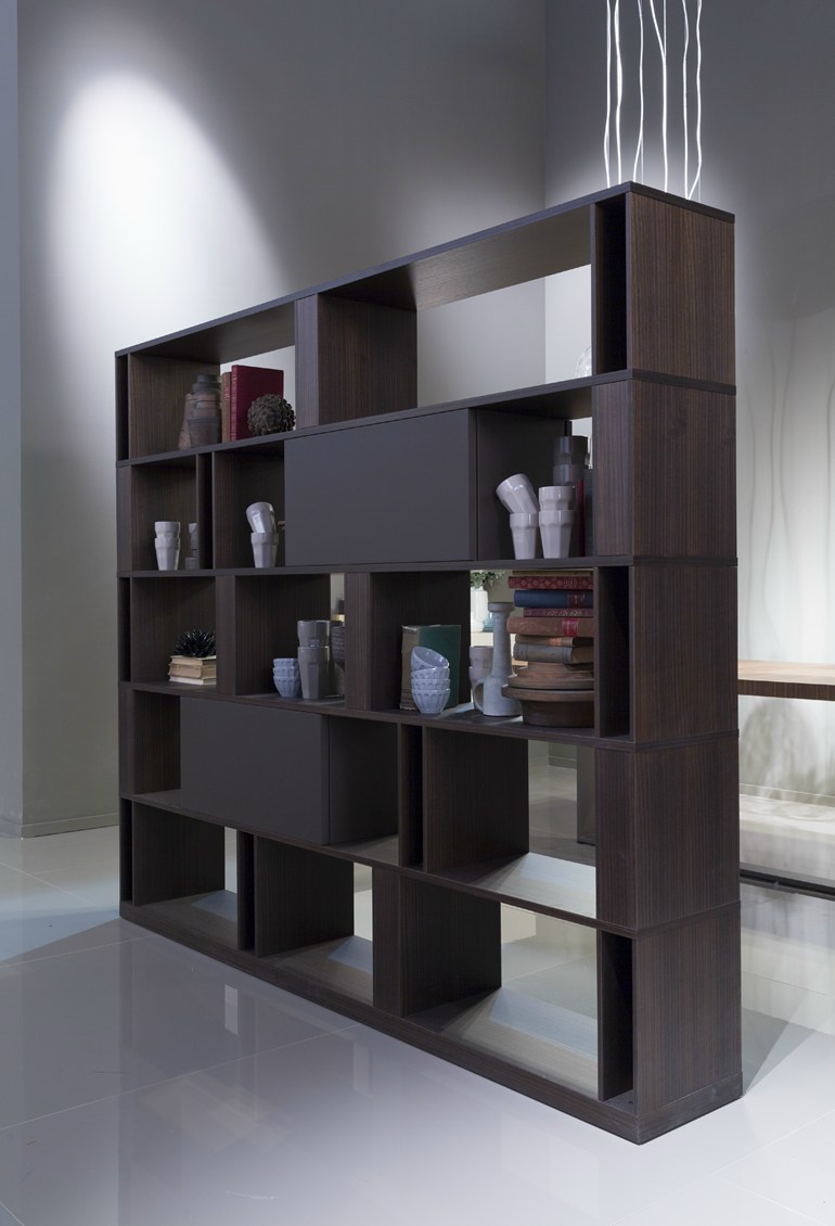 Brera bietet genügend Stauraum und ist dabei ein echter Hingucker, da das Regal auch mittig im Raum als Raumteiler platziert werden kann.