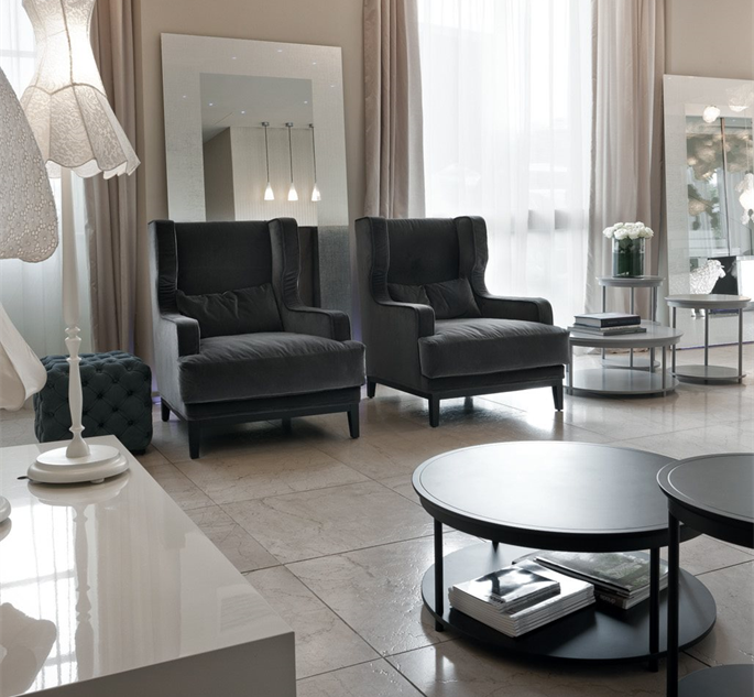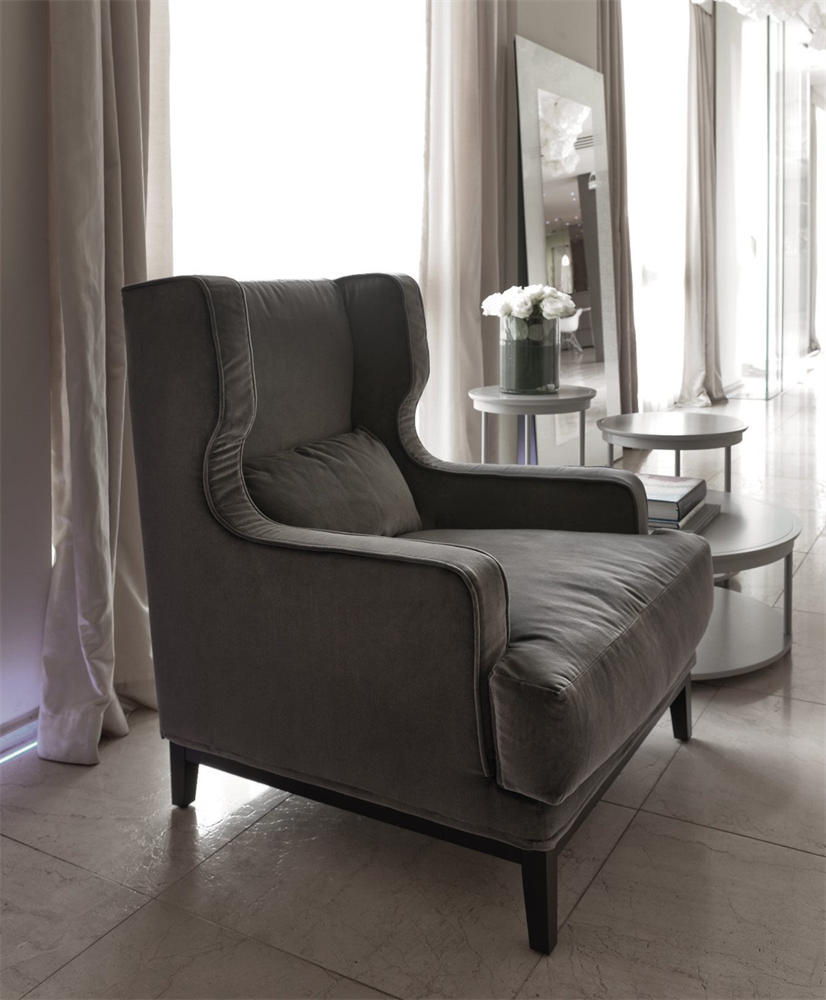 Der zeitlose Sessel Camille ist äußerst komfortabel durch das tiefe Sitzkissen, die stützenden Armlehnen und einem hohen gepolsterten Rücken.