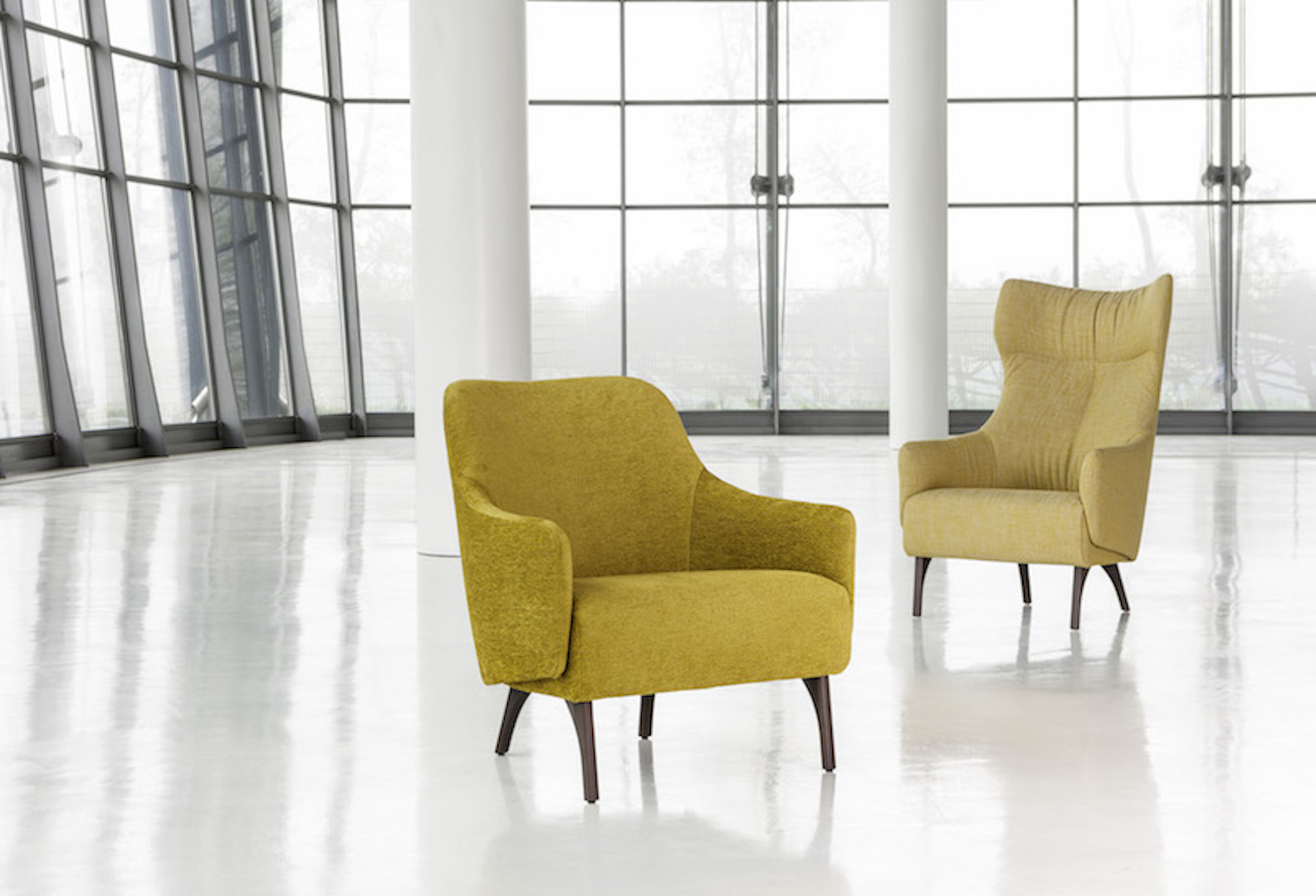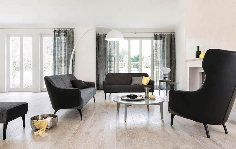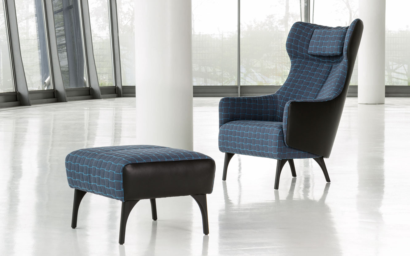 Durchdachte Details, wie zum Beispiel die wahlweise verstellbare Rückenlehne des einladenden Ohrensessels, bieten zudem eine hohe Funktionalität. Einerseits transportiert Flow den klassisch stilvollen Designgedanken in die heutige Zeit und andererseits wird die Doppelrolle „Objekt-und Wohnbereich-Tauglichkeit“ erfüllt.