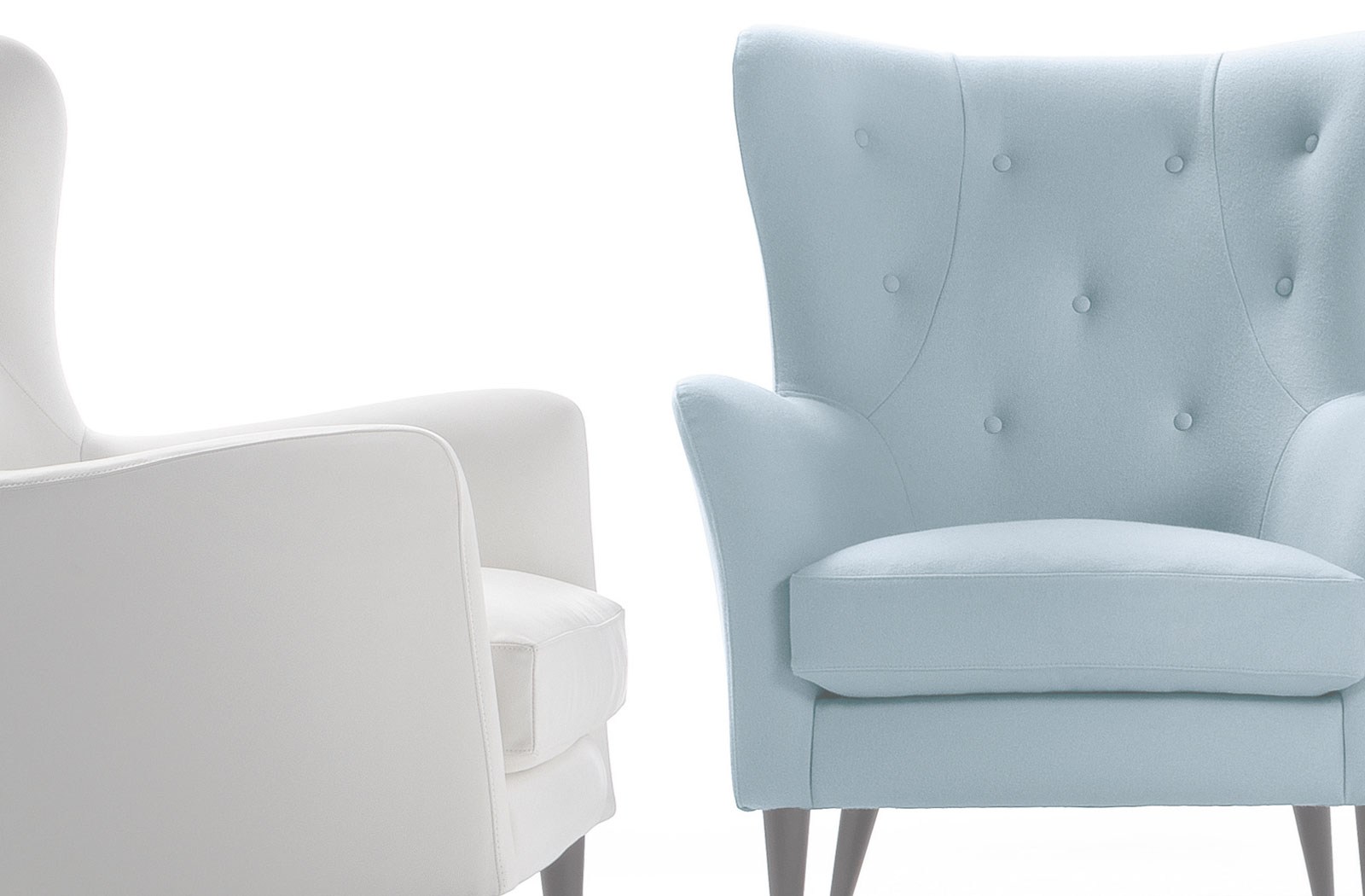 Die Maße von Wilson sind 95 cm hoch x 81 cm breit x 86 cm tief und ist in seiner Ausführung sowohl mit einem Stoffbezug sowie in Leder erhältlich. Den Sessel Wilson gibt es darüber hinaus auch als kleines Sofa.