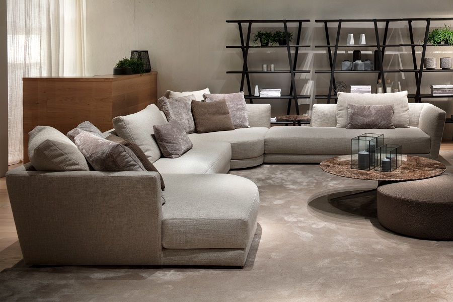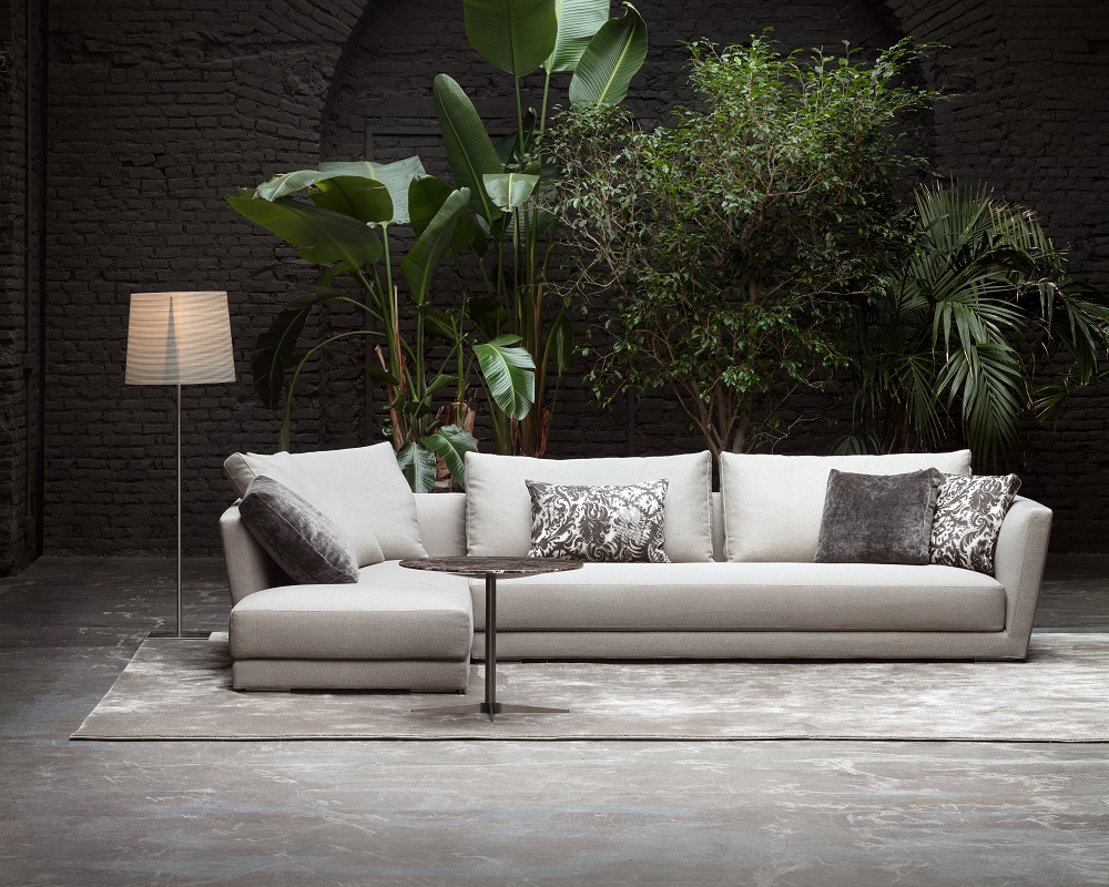 Lyndon ist ein Polstermöbel, das aus mehreren linearen Modulen und einigen mit abgerundeten Formen besteht, die die ästhetischen und gestalterischen Möglichkeiten bereichern.