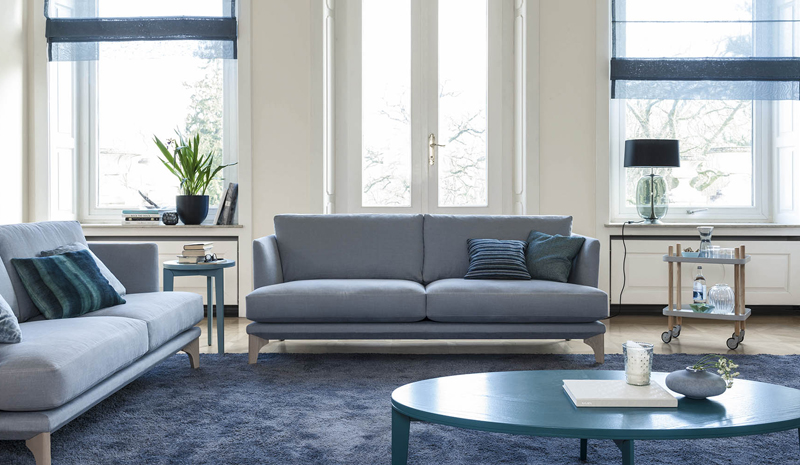 Das Polstermöbel-Programm POLO LIVING umfasst Sofas in drei unterschiedlichen Breiten sowie einen vielseitig nutzbaren Polsterhocker.