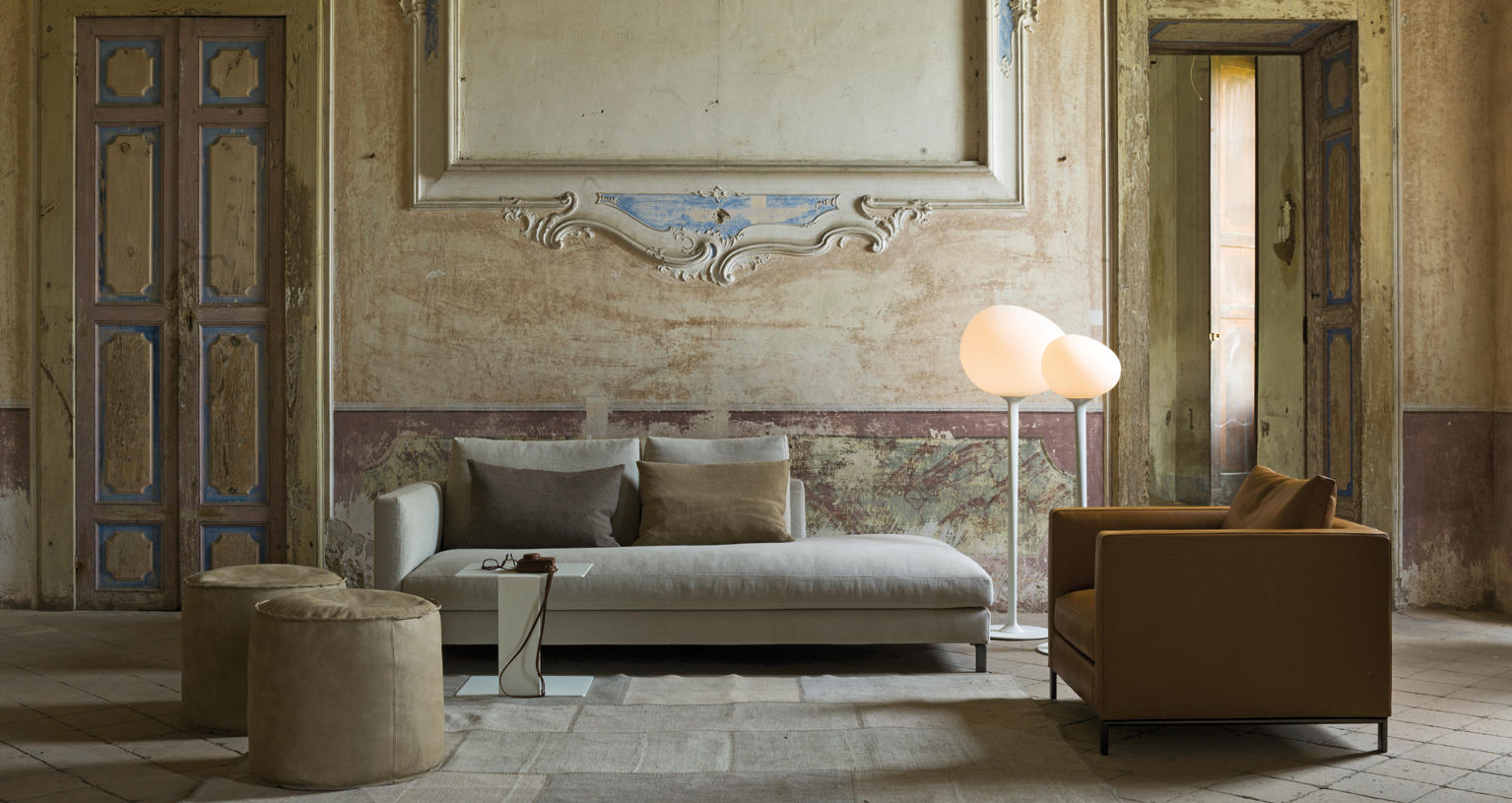 Die Kollektion Larsen bietet Sofas und Hocker in verschiedenen Größen und als Ergänzung eine passende Chaiselongue sowie einen Sessel.