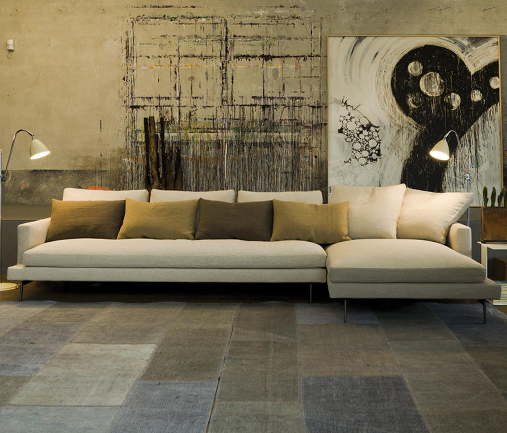 Der Stoffbezug ist frei aus einer großen Kollektion wählbar und komplett abziehbar. Neben der Stoffausführung ist Larsen ebenfalls in Leder möglich.