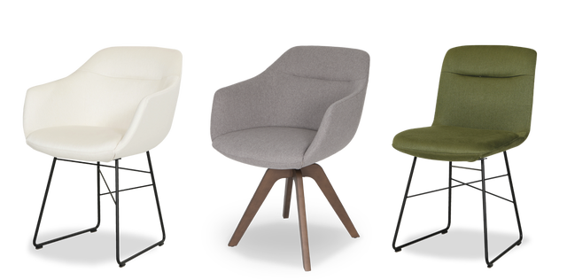 Ob mit Holzbeinen oder dem modernen Drahtuntergestell, Cara ist wandelbar und wirkt in jeder Einrichtung.