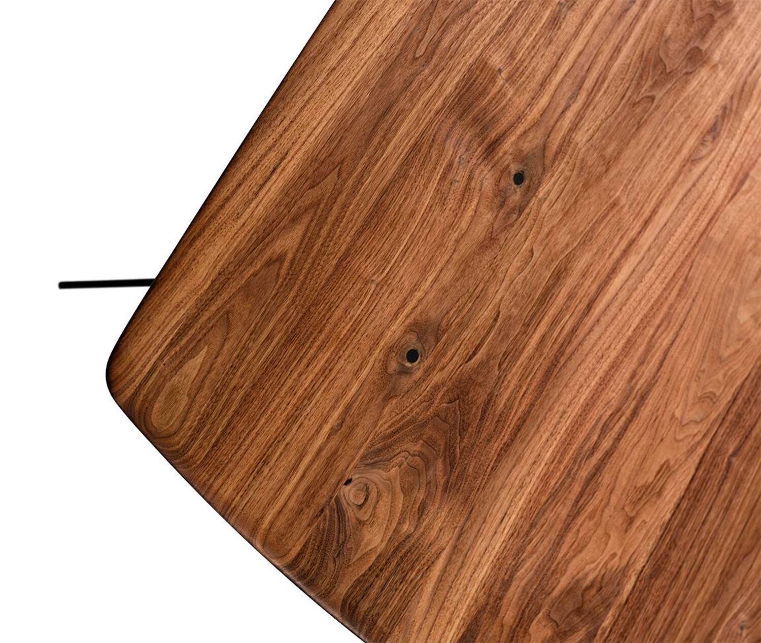 Die Platte ist wahlweise in Nussbaum oder Eiche in verschiedenen Farbnuancen erhältlich, das Gestell gibt es sowohl als Rund- wie auch Ovalrohr in Schwarz, Rauchbraun, Edelstahl matt geschliffen und Anthrazit. Taras ist in 180 cm - 300 cm Länge ideal für jede Essbereich Größe und hat dabei immer eine Breite von 100 cm. Das Plattendetail mit einer schweizer Kante macht den Tisch zu einem echten Handschmeichler.