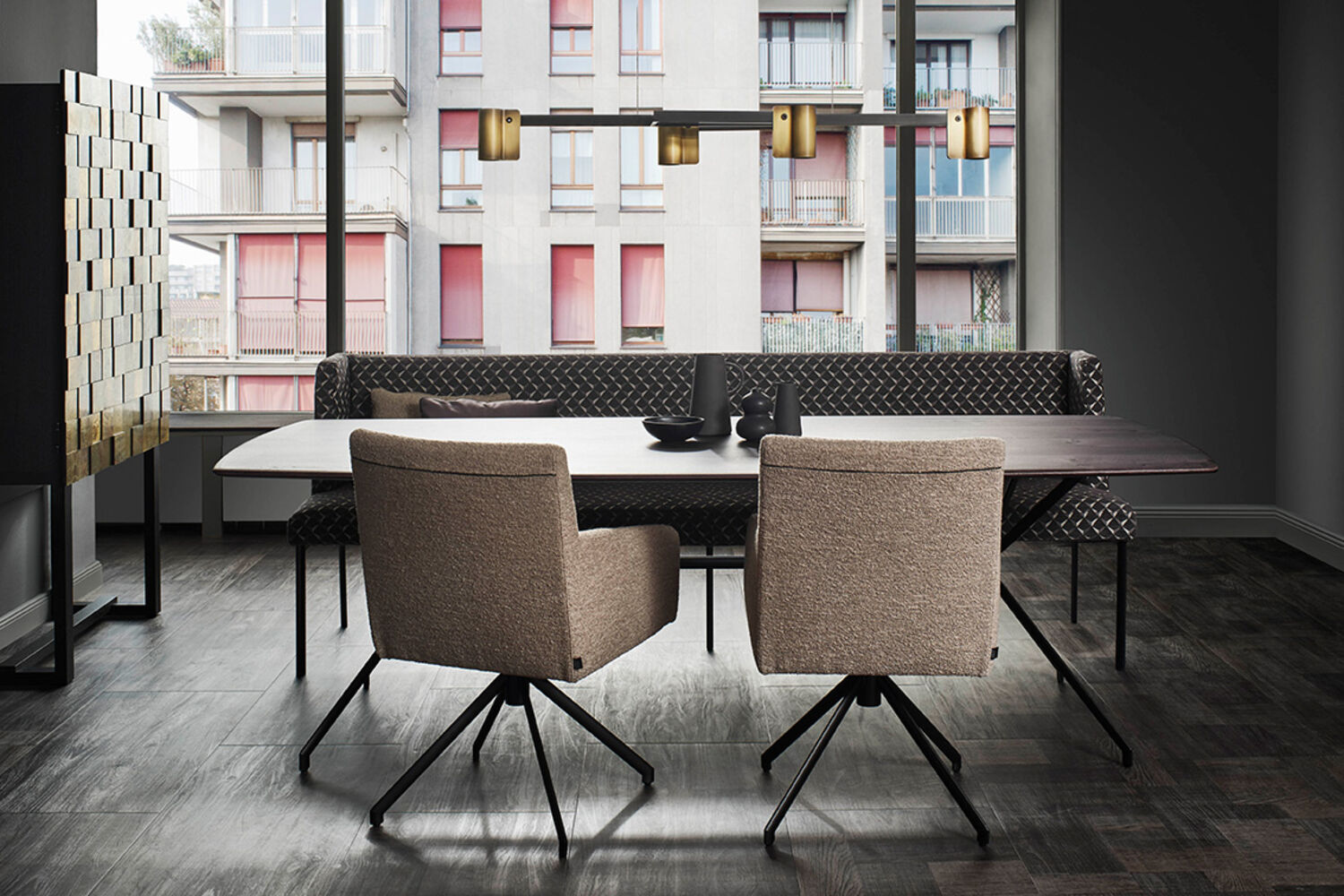 Der filigrane Esstisch Taras besticht durch seine spannende und dabei pure Formensprache.