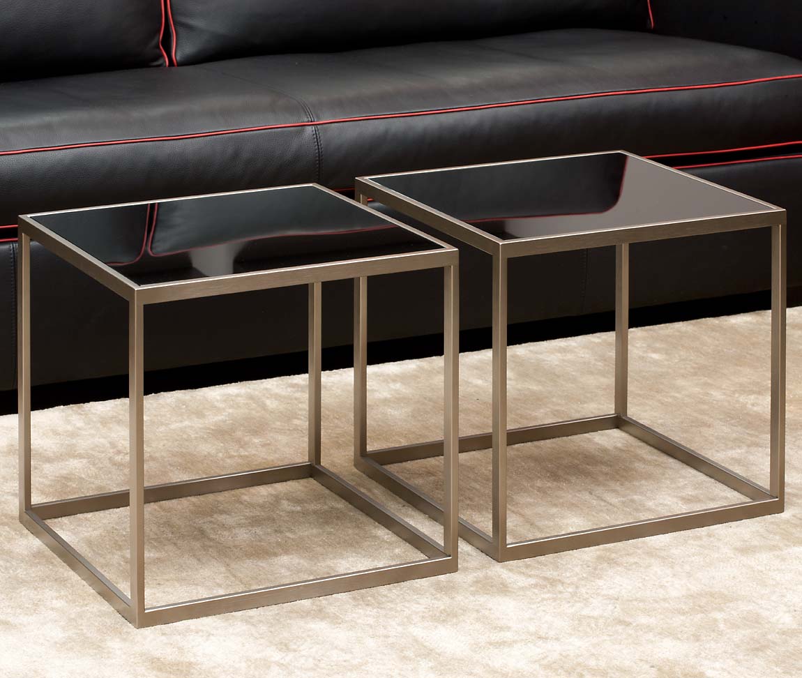 Darüber hinaus gibt es statt lackierten Einlegeplatten auch Glas als Tischplatte. Das Glas gibt es wahlweise in klassischem Klarglas, Klarglas schwarz hinterlackiert sowie Parsolglas in grau.