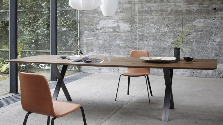 Der moderne Tisch LAX besteht aus einer 30 mm starken Massivholzplatte, die in Räuchereiche und all unseren weiteren Holzarten verfügbar ist.