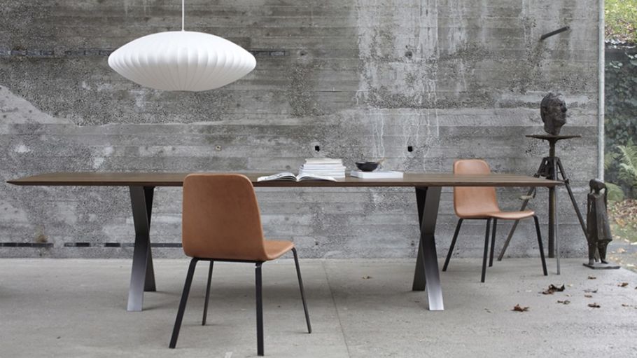 Das Gestell des LAX Tisches ist aus Stahl gefertigt und in anthrazit/tabak farbiger Ausführung sowie in Edelstahl gebürstet erhältlich.