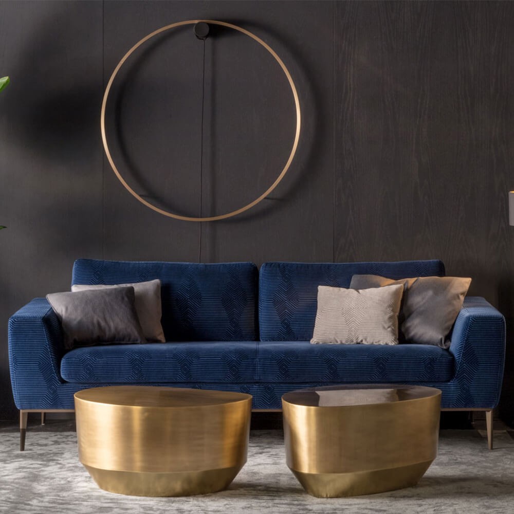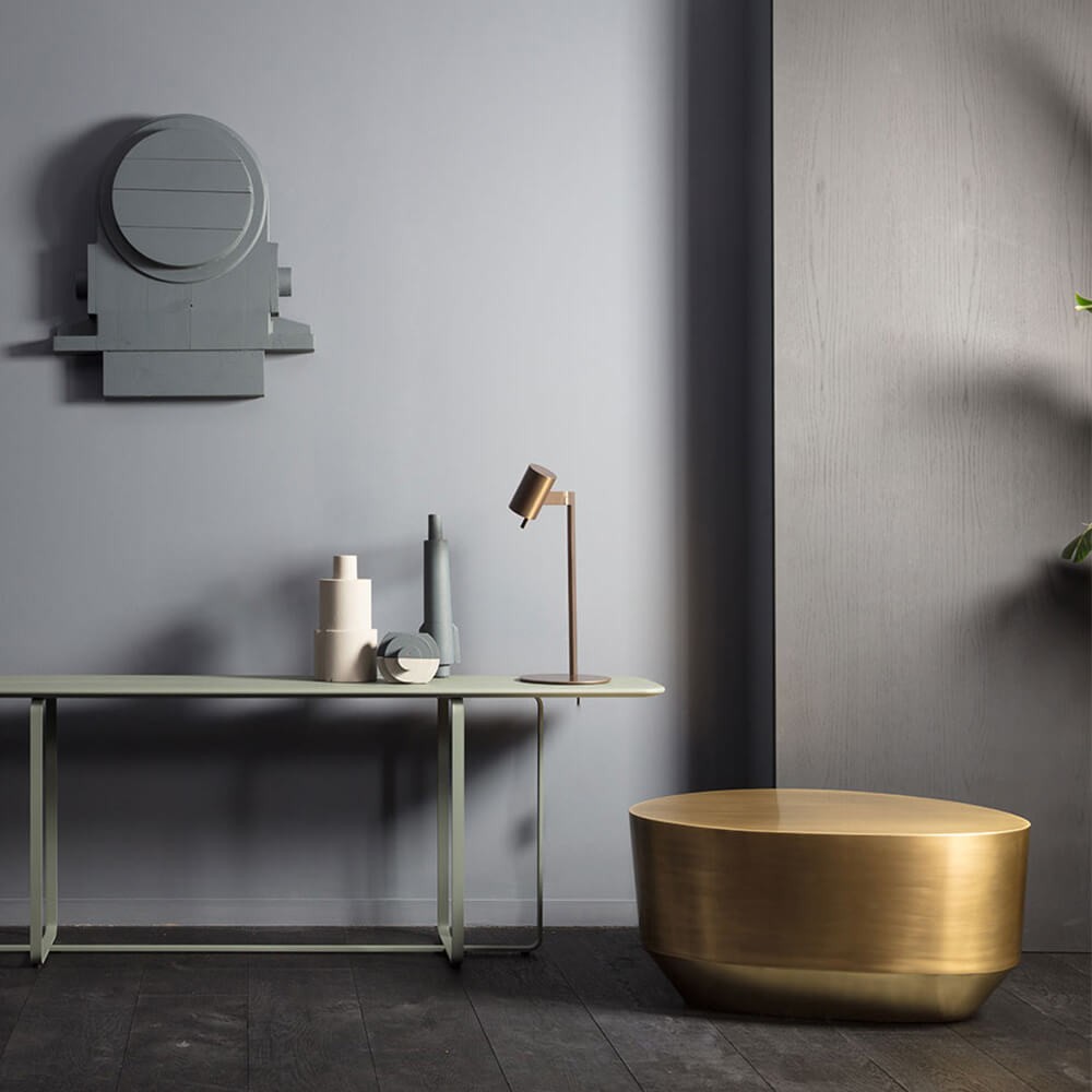 Ein schöner Tisch für alle, die das Besondere lieben, ist der Couchtisch Midas in einer ovalen Form, der komplett in Handarbeit entsteht. Er besitzt eine Deckplatte aus vier Millimeter starkem massivem Messing oder in Edelstahl matt, das sorgfältig geschliffen und dezent brüniert wird. Der abgekantete Sockel, der den Tisch optisch schweben lässt, ist poliert und durch einen Lack vor Oxidation geschützt. Auch diese Arbeiten werden von Hand ausgeführt, deshalb ist jedes Exemplar stets ein Unikat. Er bringt Glanz in das Wohnzimmer, sieht aber auch in vielen anderen Räumen gut aus.