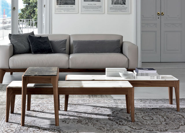 Das Ziggy Sortiment, alle von Carlo Ballabio entworfen, umfasst den quadratischen Couchtisch, rechteckigen Couchtisch, und Beistelltisch.