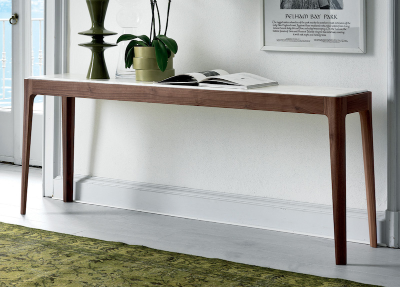 Entworfen von dem hoch angesehenen Designer Carlo Ballabio für Porada in Italien, ist der Ziggy Konsolentisch ein stilvoller zeitgenössischer Konsolentisch, der einen festen Canaletta Holzrahmen mit entweder einem Holz oder luxuriösen Marmoroberfläche kombiniert.