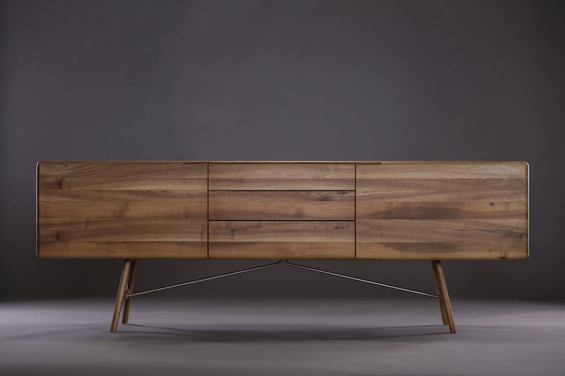 Neben dem formenschönen Esstisch umfasst die Kollektion ein Sideboard sowie Stühle.