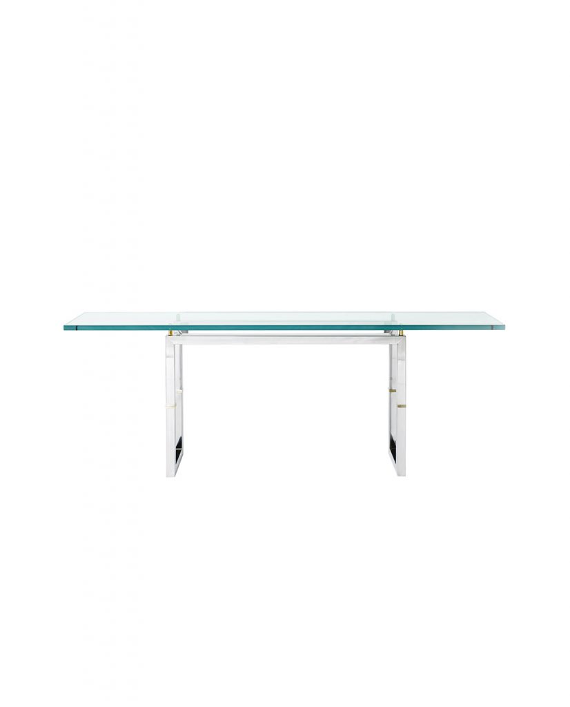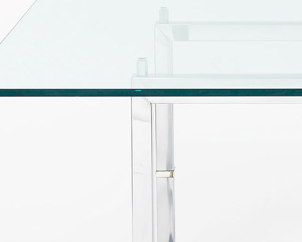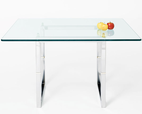 Der exklusive Glastisch T29 ist ein echter Hingucker und eine Endlosschleife aus Edelstahlrohren (Durchmesser 4 x 4 cm) bildet das Gestell dieses Tisches.
