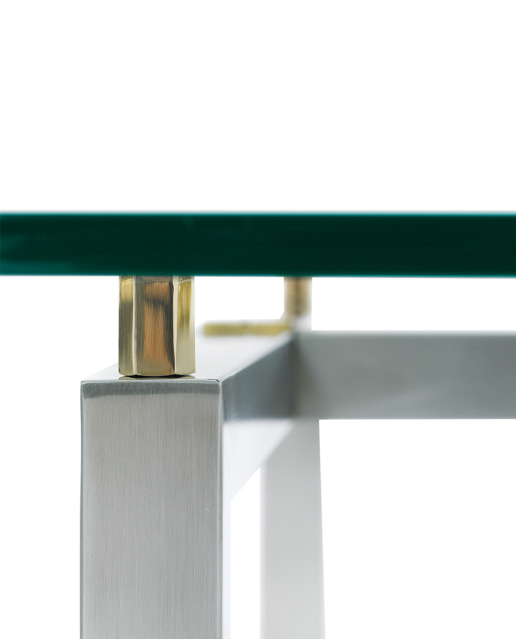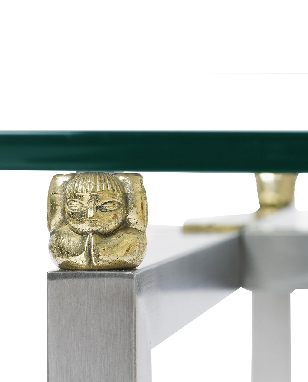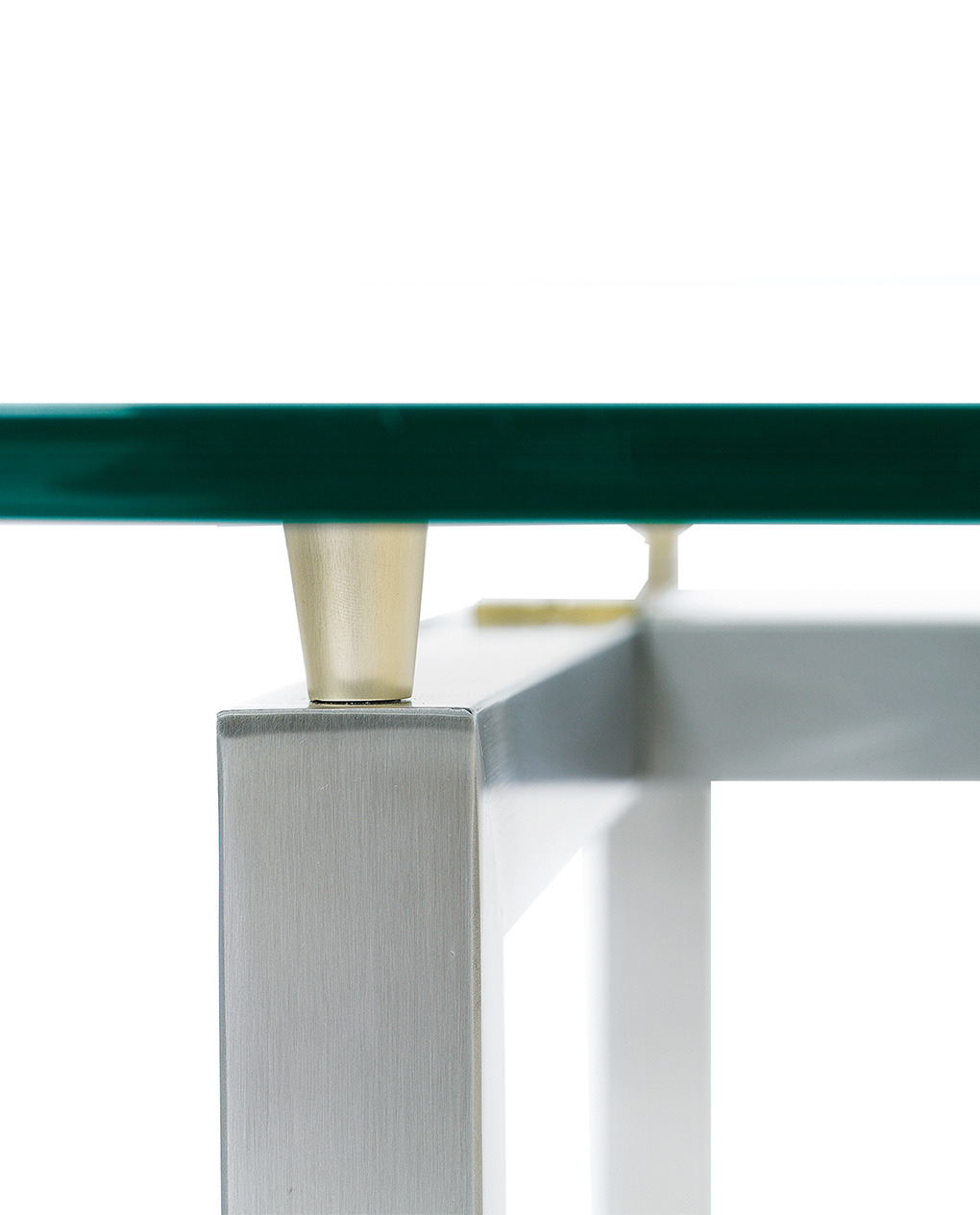 Unterbrochen wird diese Schleife durch vier Gußteile mit einer glatten oder gerippten Oberfläche. Die Tischplatte ist wahlweise 15 cm oder 24 cm stark und ruht auf vier Glasträgern, die in vier verschiedenen Optiken erhältlich sind. Das Gestell ist in den Folgenden Oberflächen erhältlich: Aluminium glänzend, Aluminium matt, Kupfer glänzend, Messing brüniert, Messing patiniert, Messing glänzend, Messing Matt, Ristretto, Edelstahl glänzend und Edelstahl mattiert. Das Glas gibt es in Klarglas, Optiwhite Glas sowie satiniertem Glas.