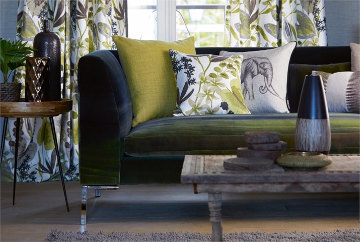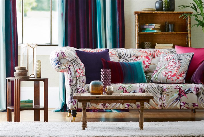 Amazilia Velvets steht für eine auffallende Kollektion prächtiger, spritzgefärbter Samtbezüge, geeignet sowohl für Polstermöbel als auch für Vorhänge.