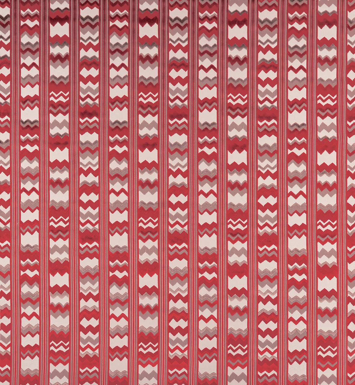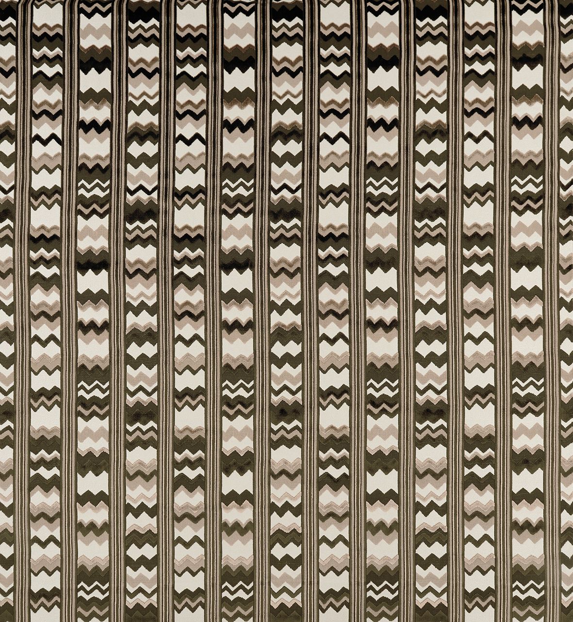 Der Bezugsstoff Sebastian zeigt ein Streifenmotiv, das in horizontaler Zick-Zack-Form in vertikalen Streifen angeordnet ist.