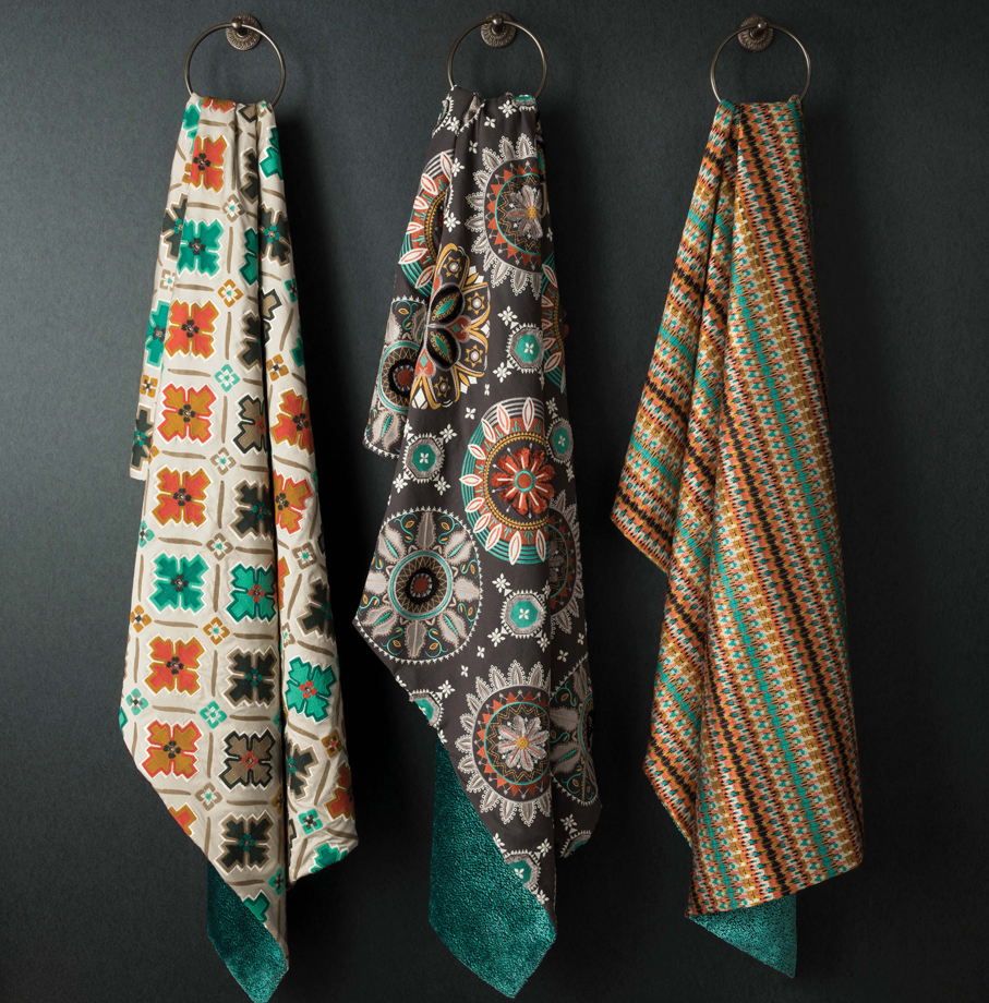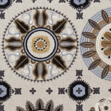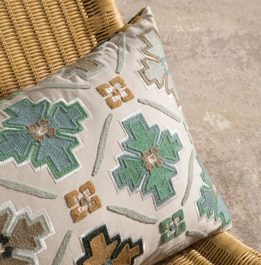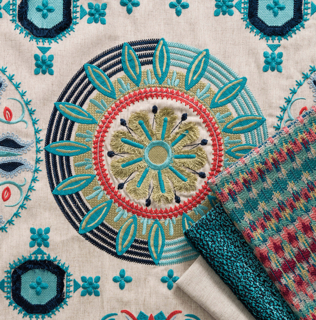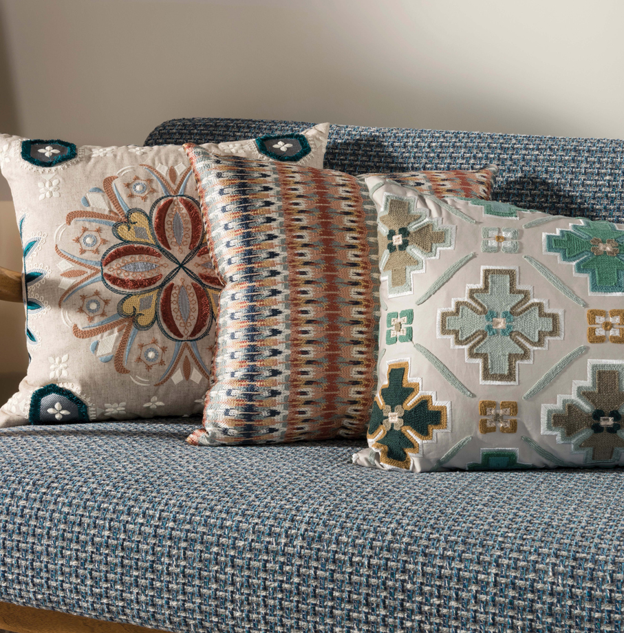 Die moderne Stoffkollektion Taza ist eine Sammlung gemusterter Stoffe mit ausdrucksstarken Stickereien marokkanischer Inspiration.