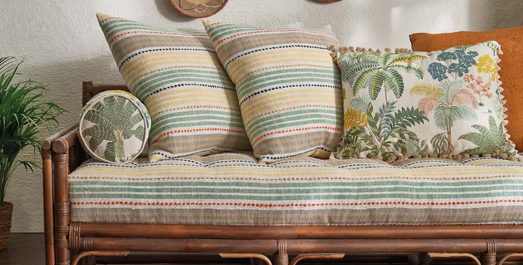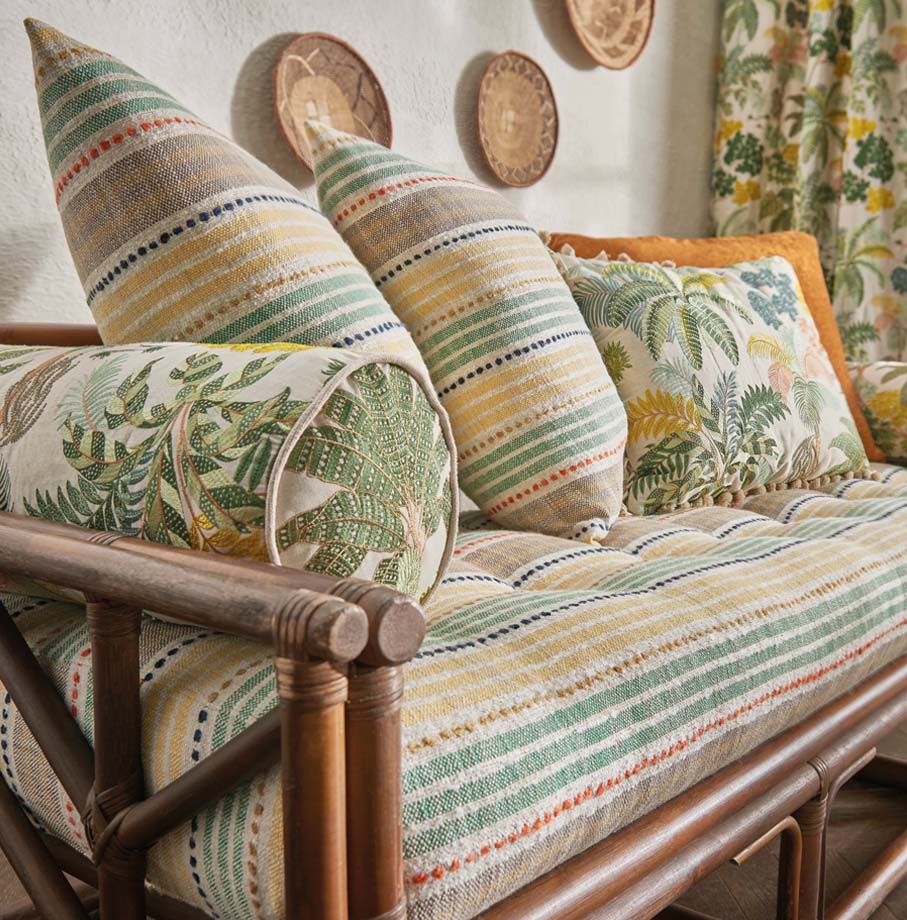 Stick-, Druck- und Webdesigns werden in einer bezaubernden Farbpalette für dramatische und ruhige Dekorationskonzepte präsentiert. Empyrea verleiht den eigenen Räumlichkeiten einen Hauch von Urlaubsgefühl und ist dabei spannend und lebendig im Ausdruck.