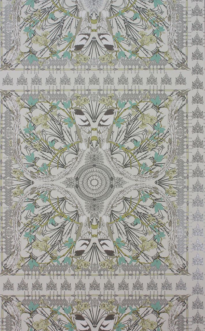Lyrebird ist eine geometrische Tapete, die bei genauerem Hinschauen viele, feine Details in sich verbirgt.