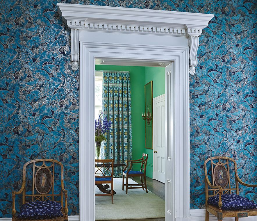 Die phantasievolle Tapete Fanfare hat der britische Modedesigner Matthew Williamson entworfen.