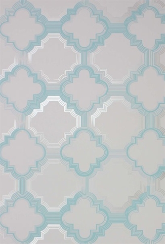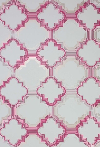 Die geometrische Tapete Quatrefoil ist eine malerische Imitation von Keramikfliesen.