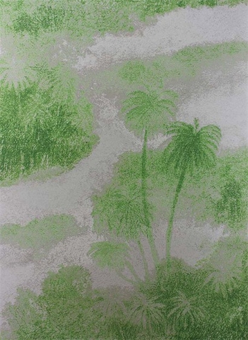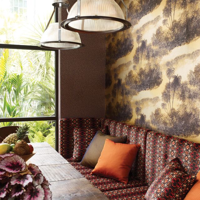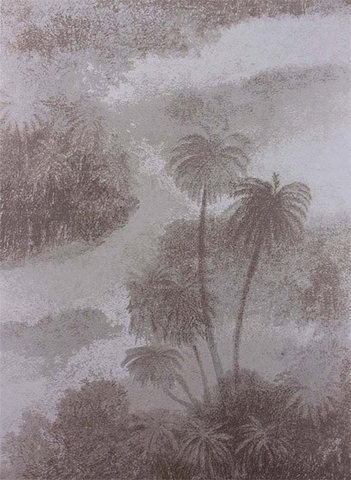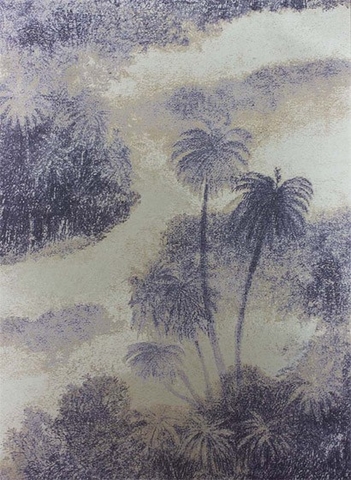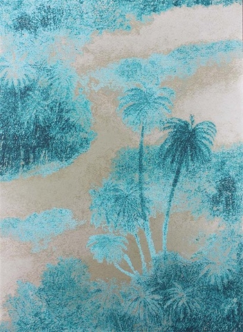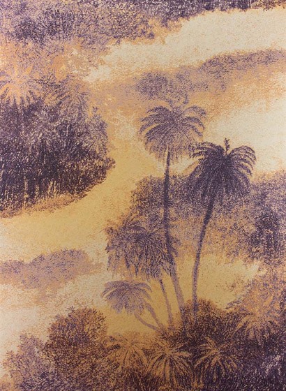 In seiner neuen Kollektion Samana ließ er sich von einem tropischen Inselparadies inspirieren. Cocos ist eine glatte Papiertapete mit metallisch-schimmernden Glanz. Das Design zeigt die Silhouetten von sich im Wind schaukelnden Palmen einer Insel und ist in 6 unterschiedlichen