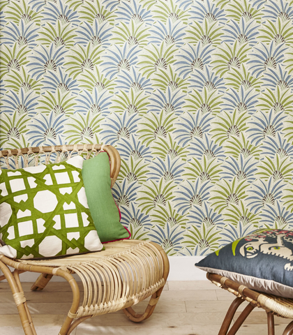 Brazilia ist eine glatte Vliestapete und in vier Farbgebungen erhältlich. Die Variante "Metallisch glänzend" ist auf Mylar, einem Material aus Polyesterfolie, gedruckt.
