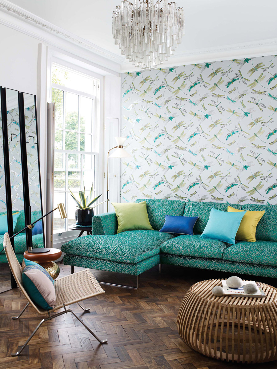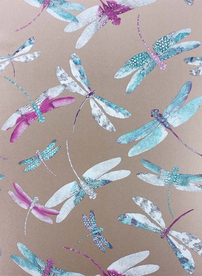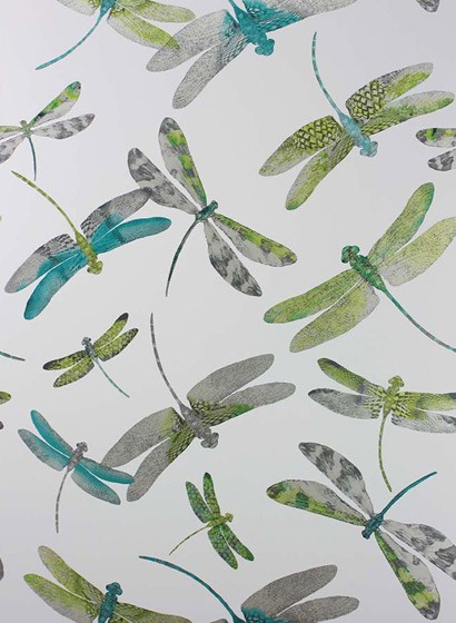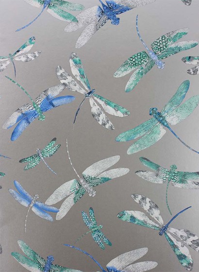 Dragonfly Dance ist die Neuinterpretation des Signaturmusters von Matthews Laufstegkollektion und wird hier als glatte Papiertapete mit metallisch-schimmerndem Glanz wiedergegeben.