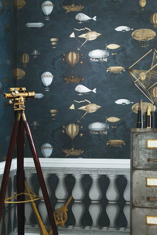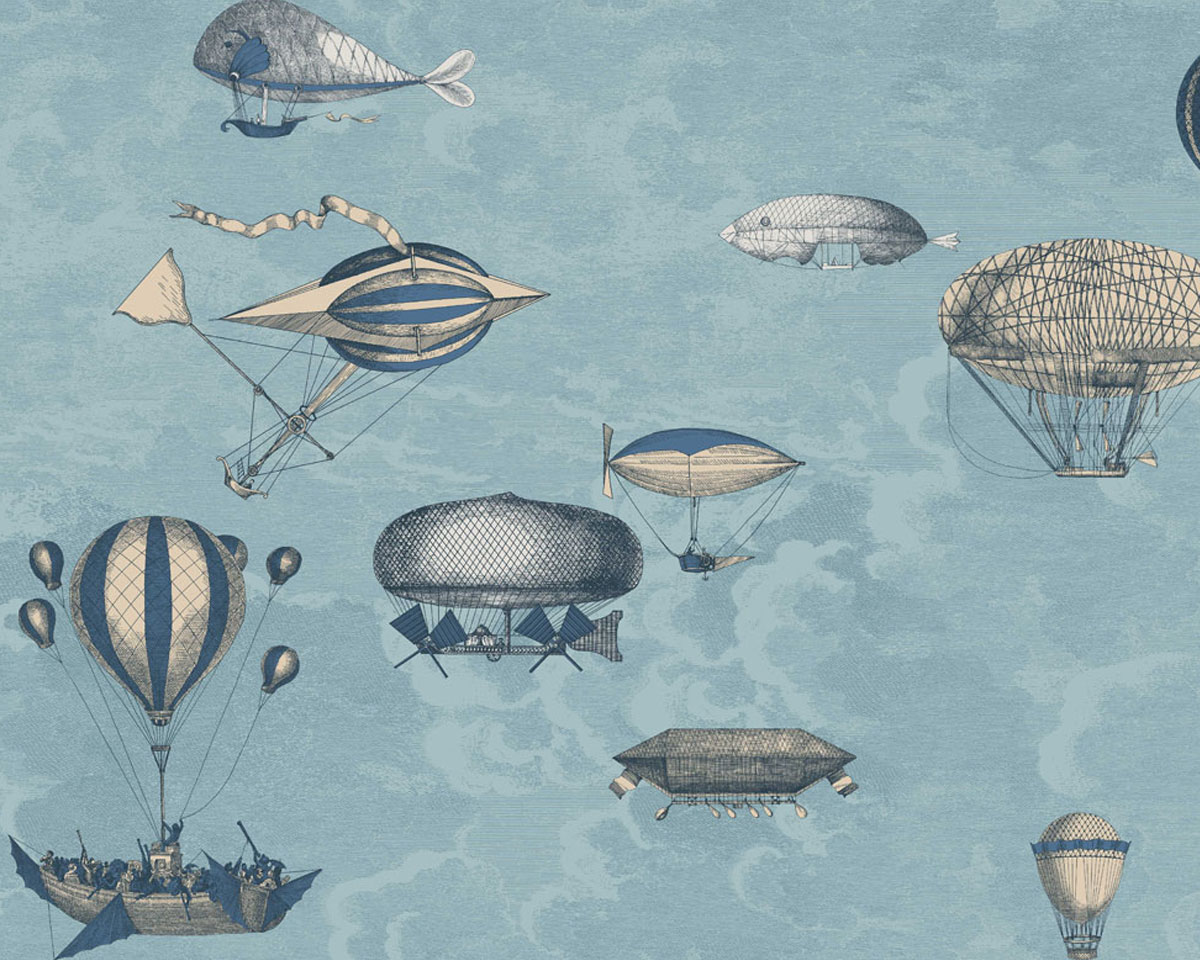 Macchine ist eine Papiertapete mit Zeppelinmotiv, diese wunderbaren nostalgischen Flugmaschinen in den Wolken erinnern an die romantische neue Welt der wissenschaftlichen Forschung.