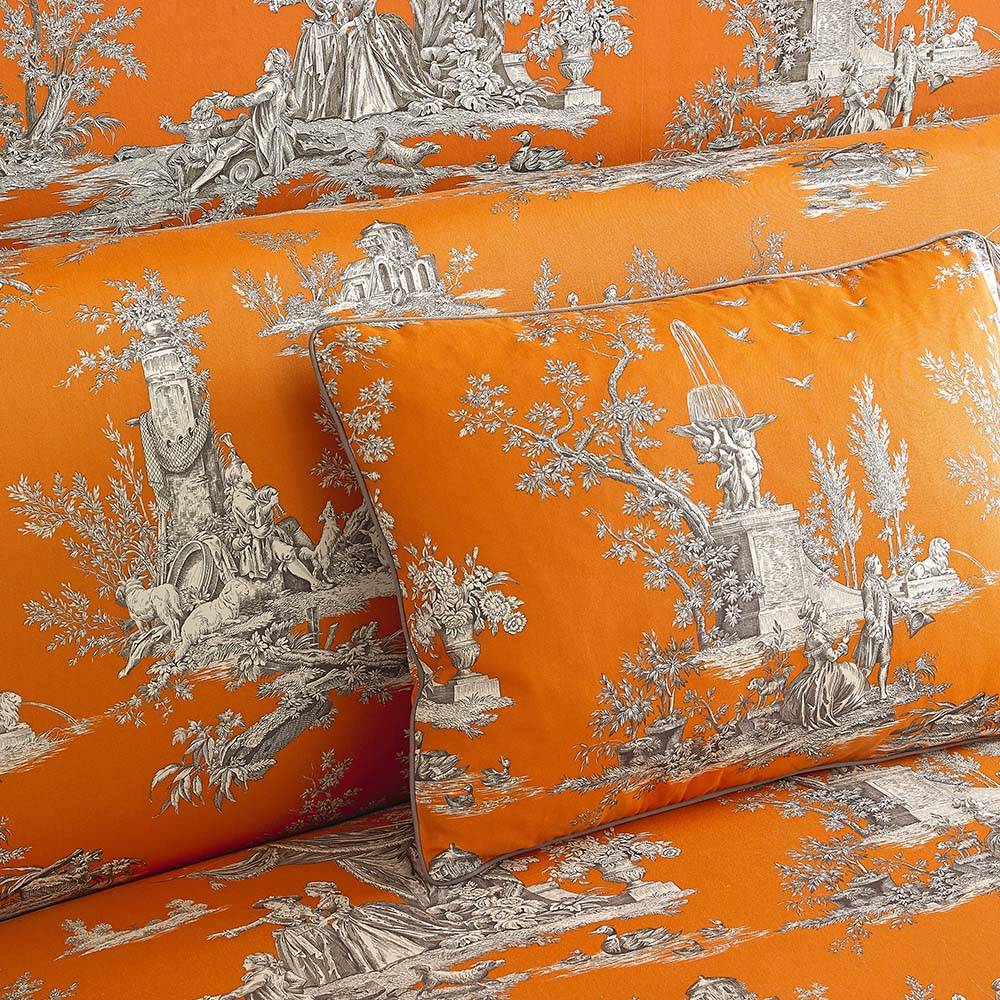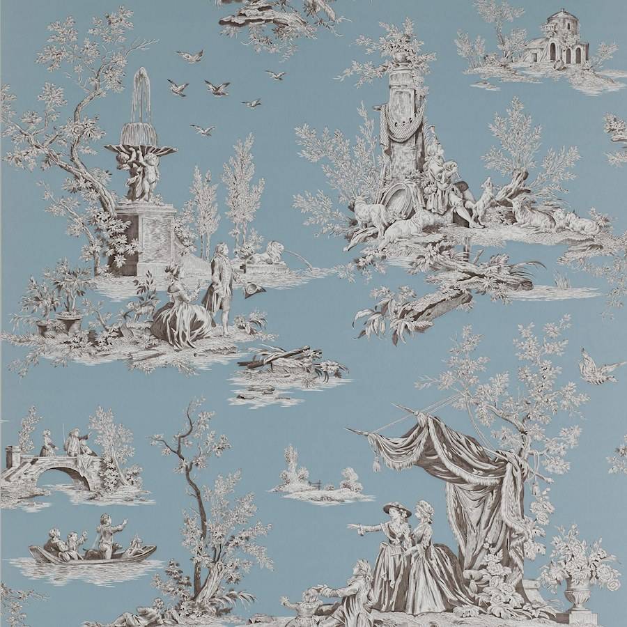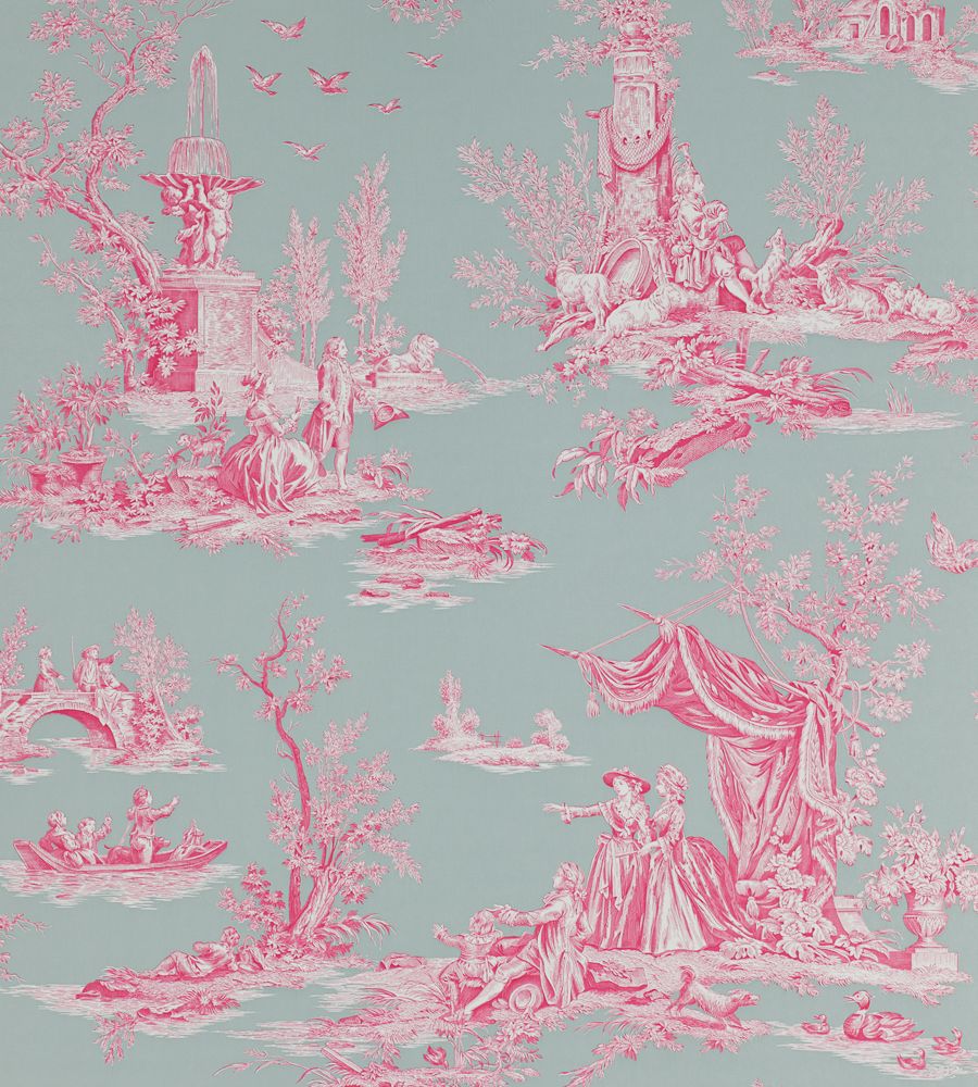 Die Schönheit und Eleganz, der Charme und der Klassizismus dieses neuen Musters im Toile de Jouy Stil des 18. Jahrhunderts ist eine Übersetzung der französischen Lebenskunst. Es stellt wunderschöne Szenen im berühmten Pariser Schlosspark Jardin du Luxembourg in unglaublichen Manuel Canovas Farben dar.
