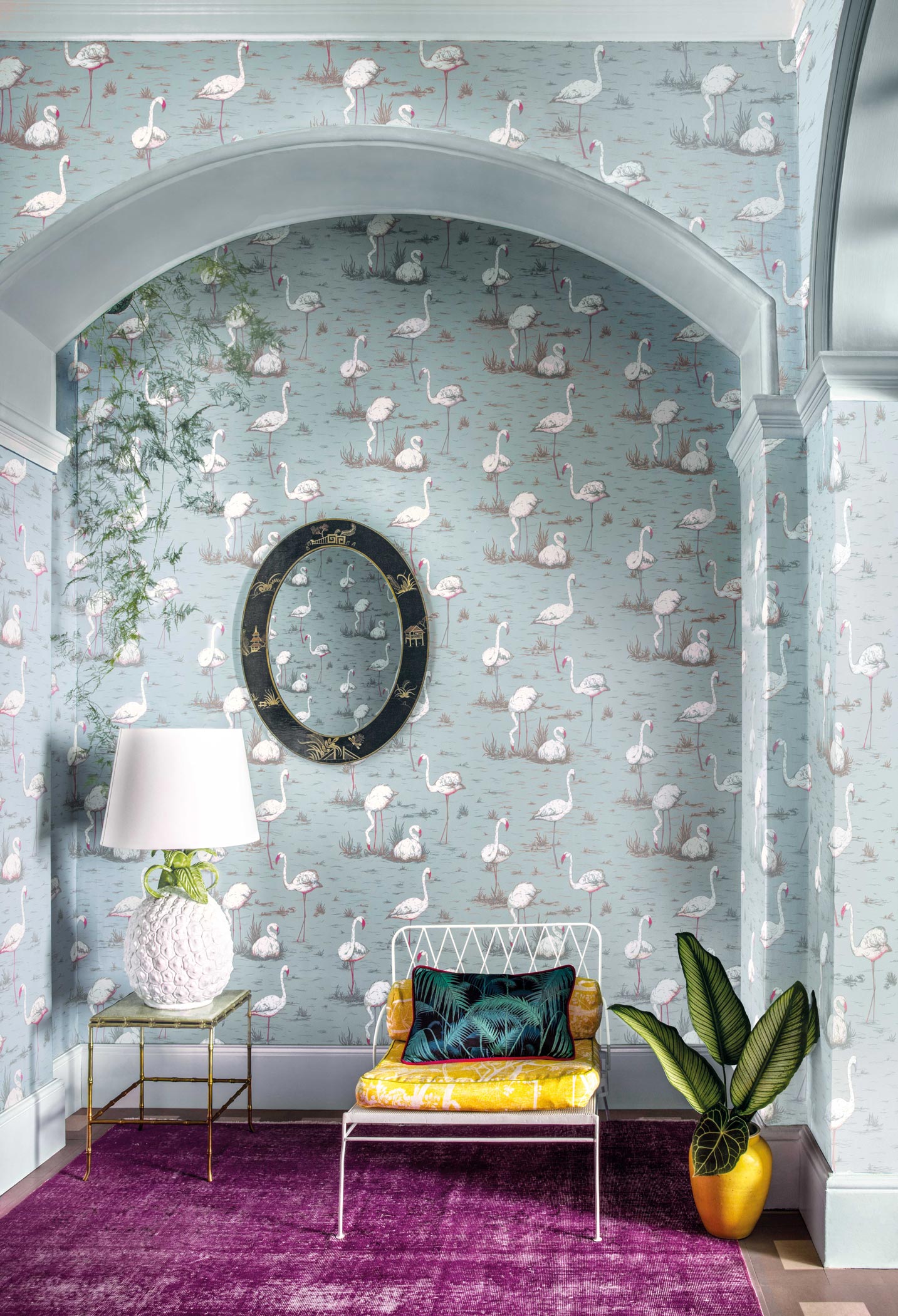 Erhältlich ist das Dessin in vier komplementären Farbpaletten: Olive, Ballet Slipper, Lilac Grey sowie üppigem Dunkelblau und Alabaster Pink.