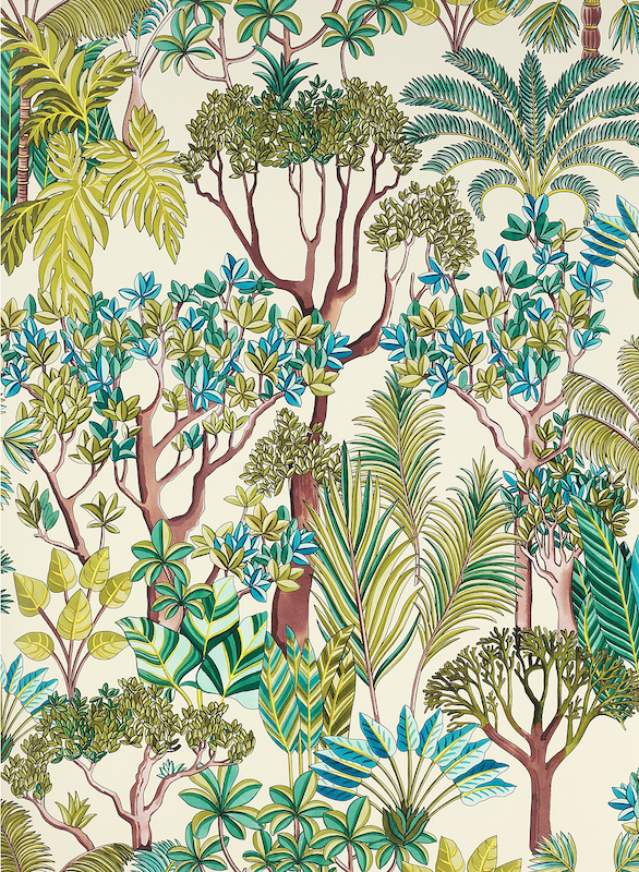 Die exotische Tapete Morny zeigt eine geheimnisvolle und mystische Waldlandschaft.