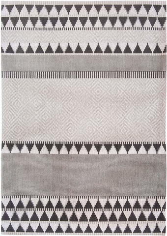 Der gemusterte Teppich Tobi zeigt ein dekoratives, geometrisches Muster, das lässig umgesetzt ist und zu verschiedenster Einrichtung passt.