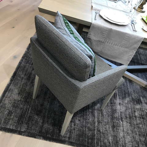 Die hochwertigen, handgewebten Teppiche Sikkim, Simla und Santushti des Herstellers Jacaranda sind aus seidig glänzendem TENCEL®, das ebenfalls aus Zellulose gesponnen wird, dessen Fasern jedoch das Licht wie Seide reflektieren. TENCEL® ist strapazierfähiger und wassertoleranter als Viskose, wird jedoch für Nassbereiche nicht empfohlen. Das Material kann vorsichtig professionell gereinigt werden.
